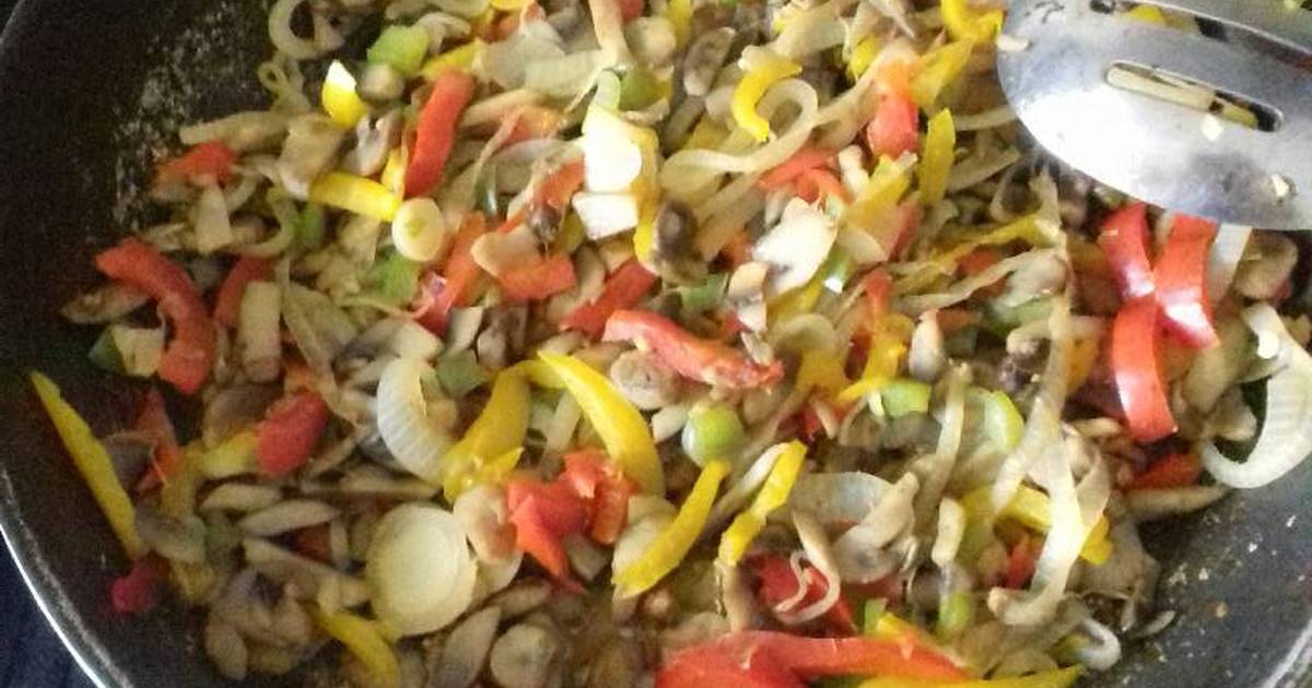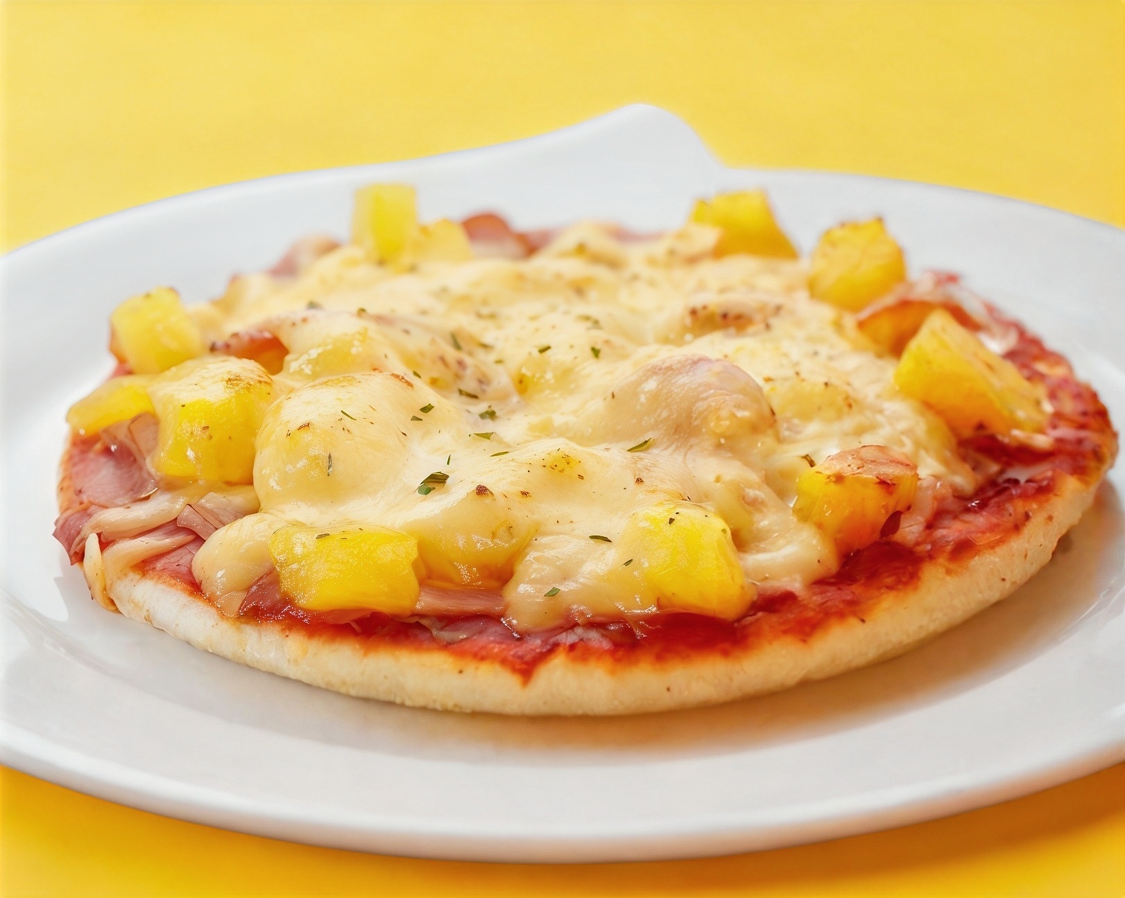 Champiñones, piña, chile morrón, cebolla y queso gratinado.