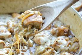 Bistec, chuleta, tocino, jamón y cebolla, envuelto en queso dorado.