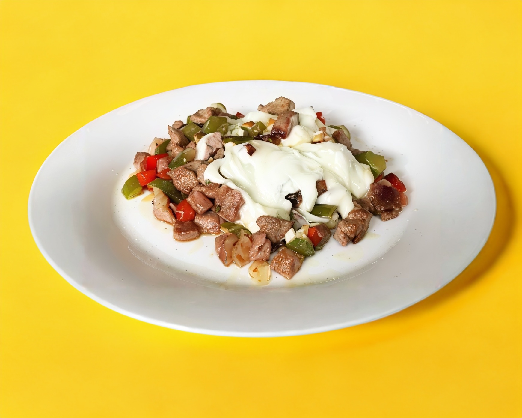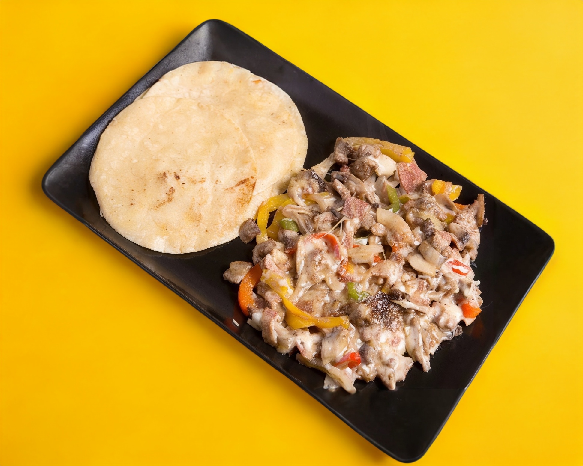 Carne Al Pastor, Chile Morrón, Cebolla y Queso