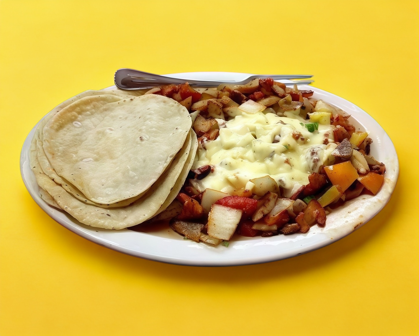 Chuleta, Tocino y Queso en 3 tortillas de harina
