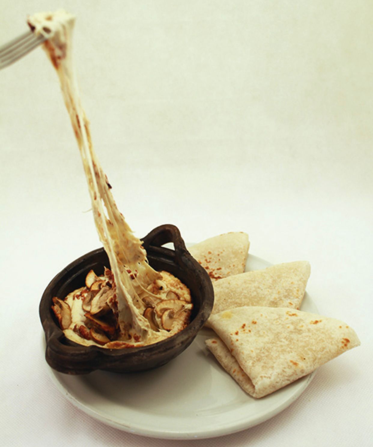 Tortilla de harina con champiñón y queso.