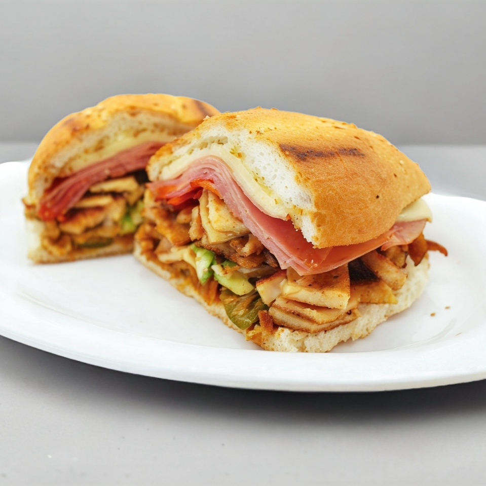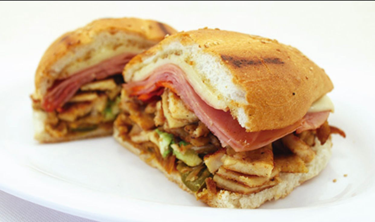 Pierna, milanesa, salchicha, jamón y queso blanco.