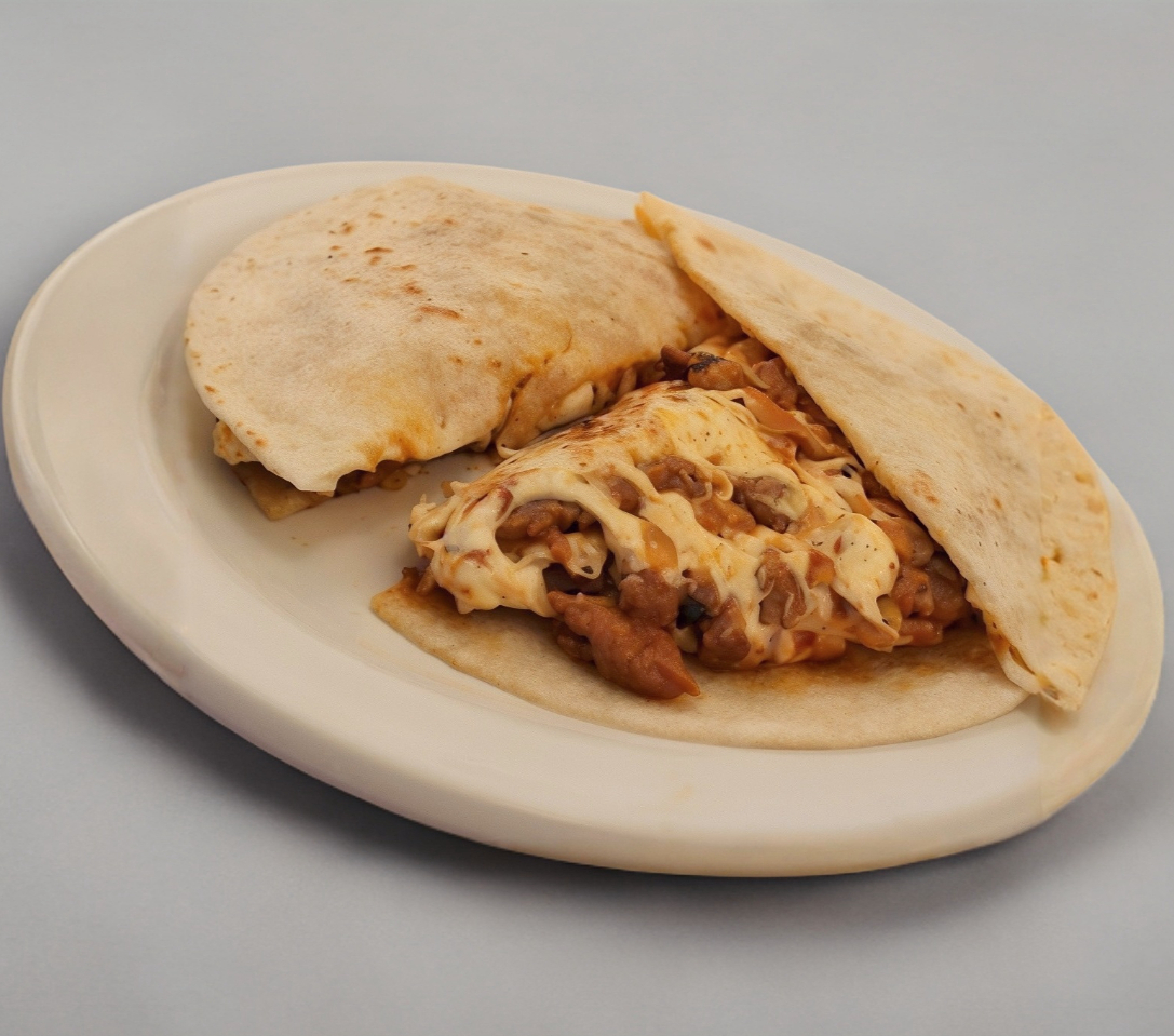 Tortilla de harina con queso y carne.