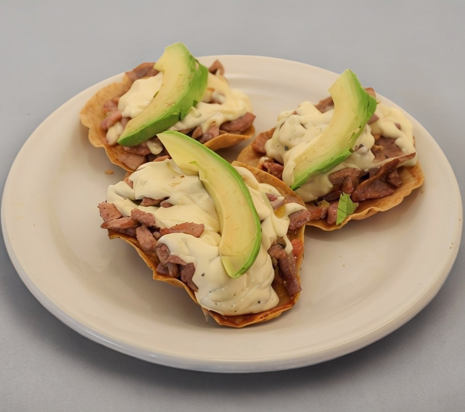 Orden de volcanes de pastor con 3 piezas, con quesillo y aguacate.