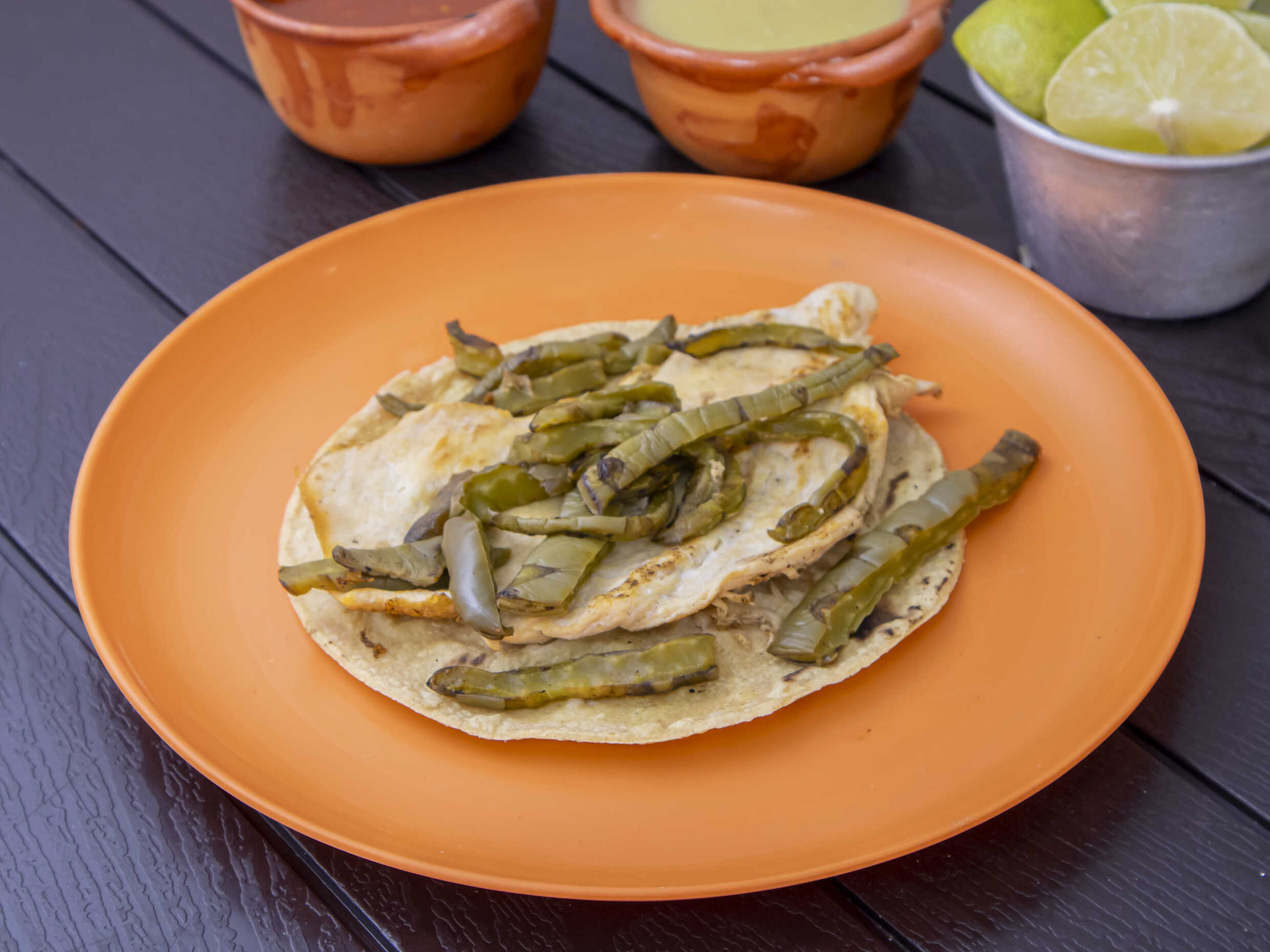 Tasajo oaxaqueño en tortilla de maiz, con verdura o nopal.