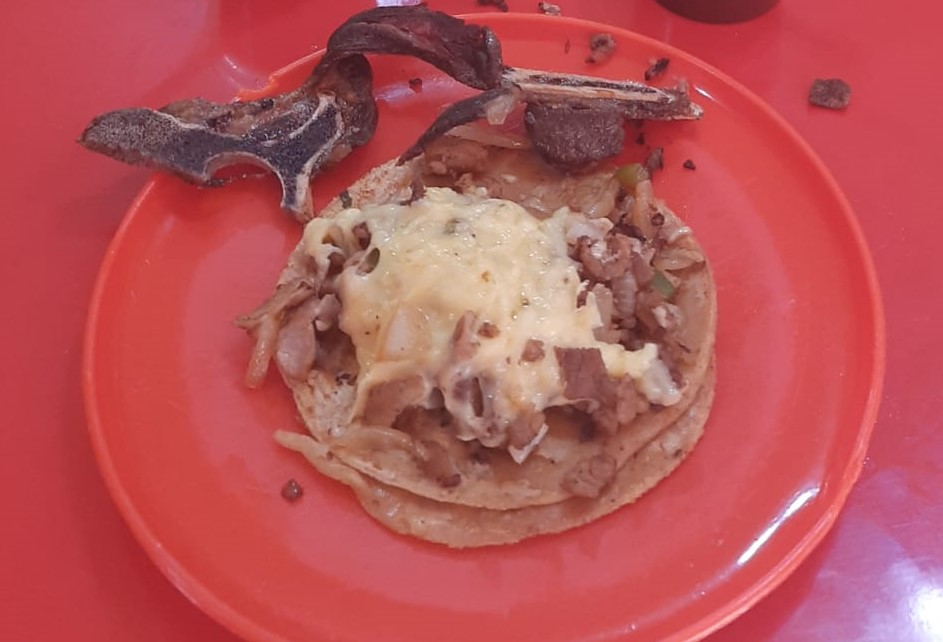 Taco de Costilla con tortilla de maíz y Queso