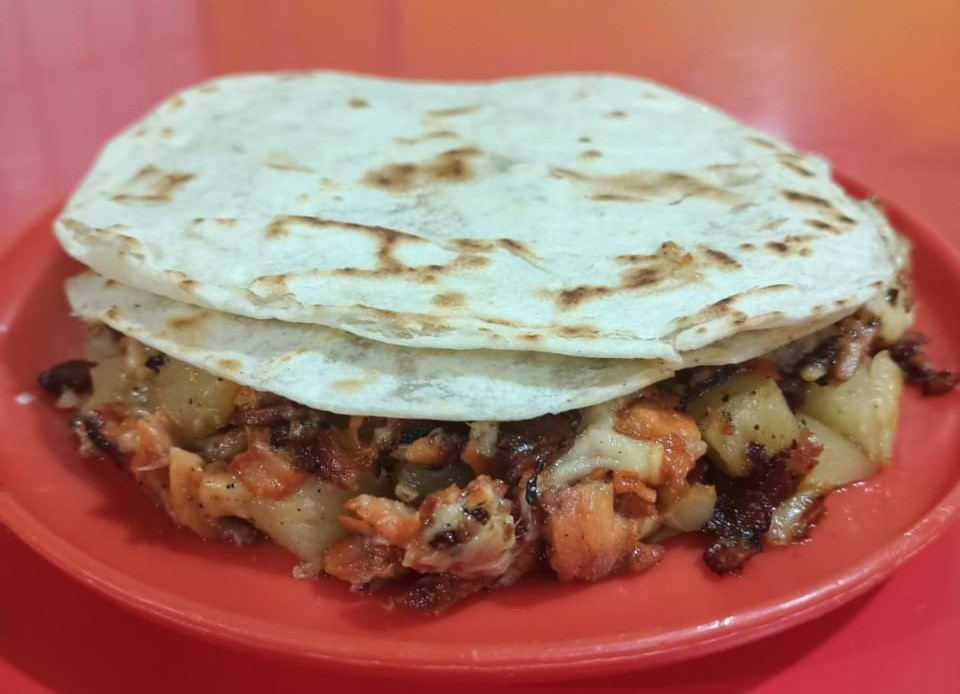 Taco de Costilla, Tocino y Queso en Harina