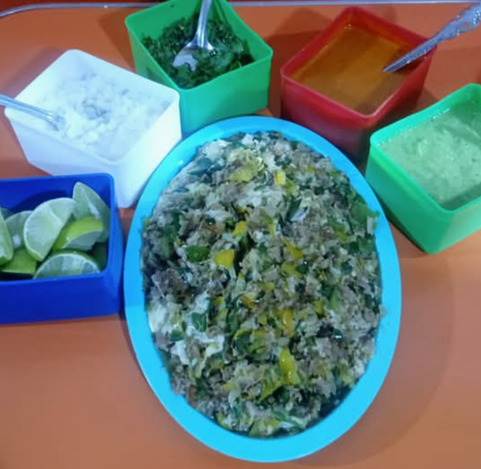 Incluye cilantro, cebolla, limones, pepinos y tortillas.