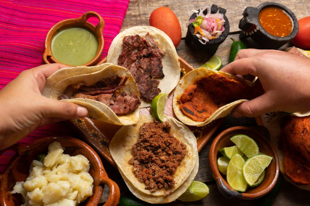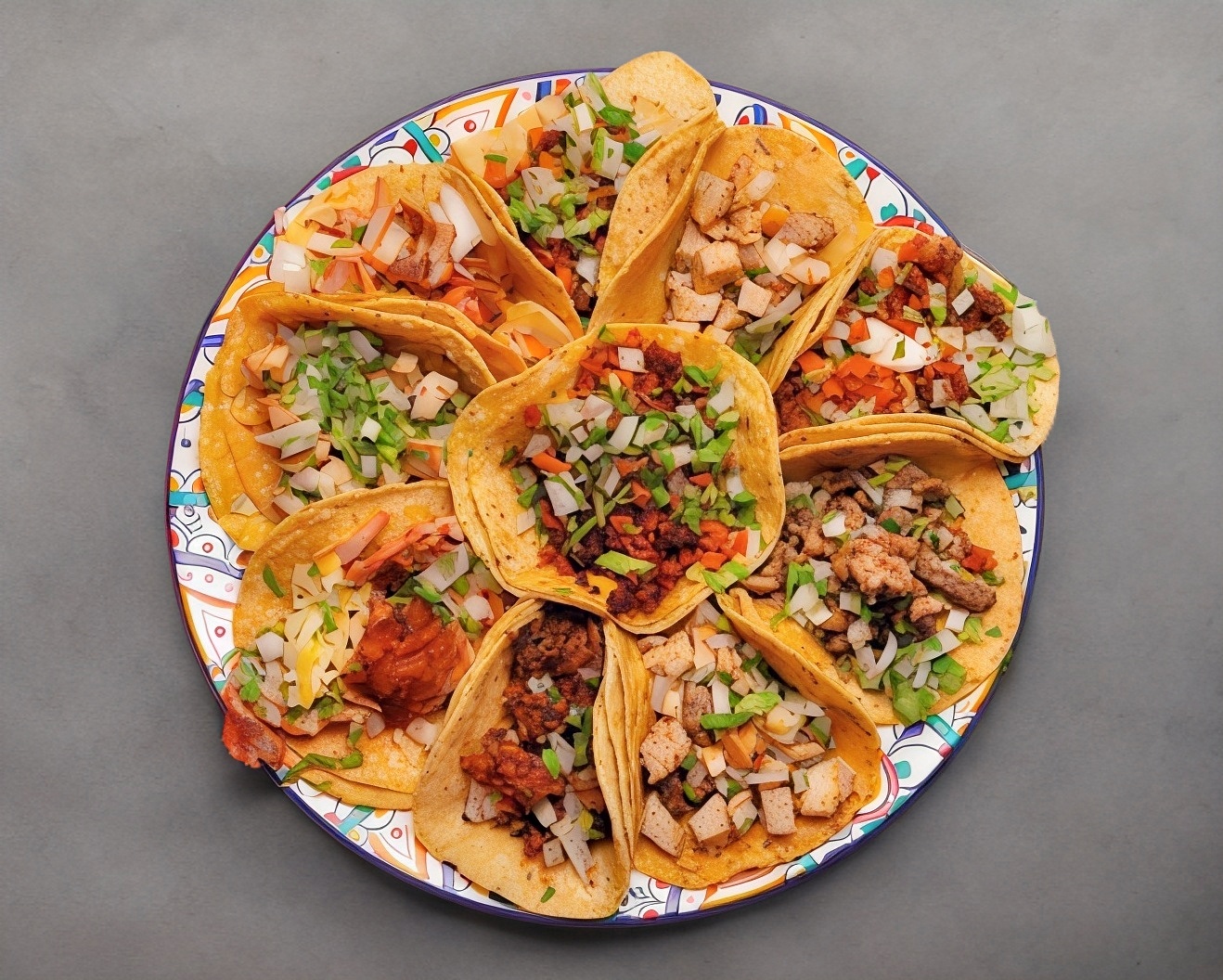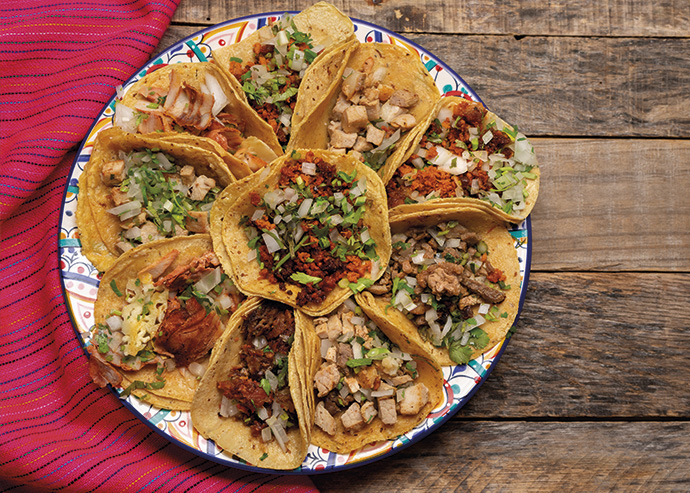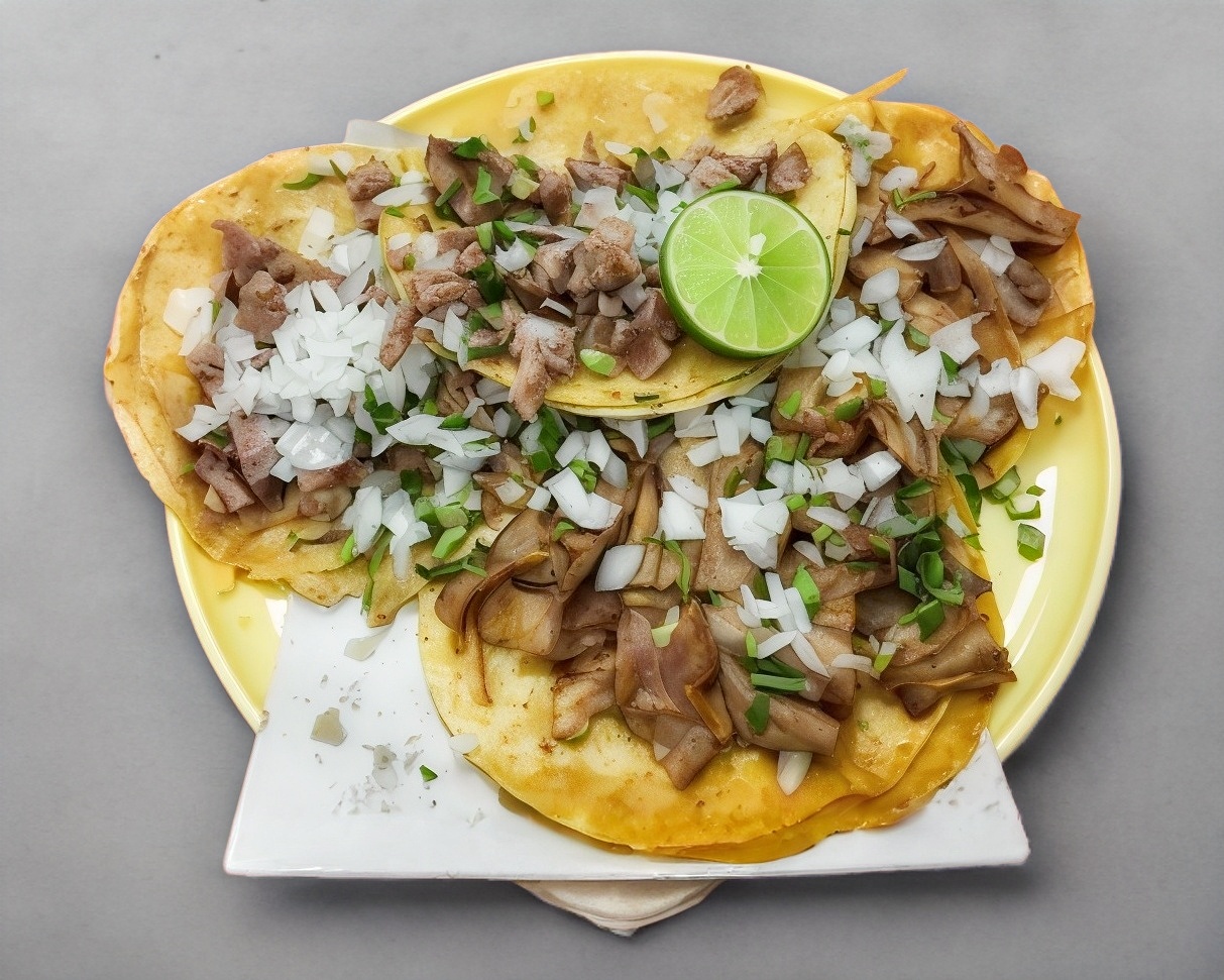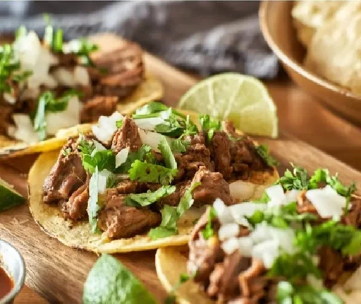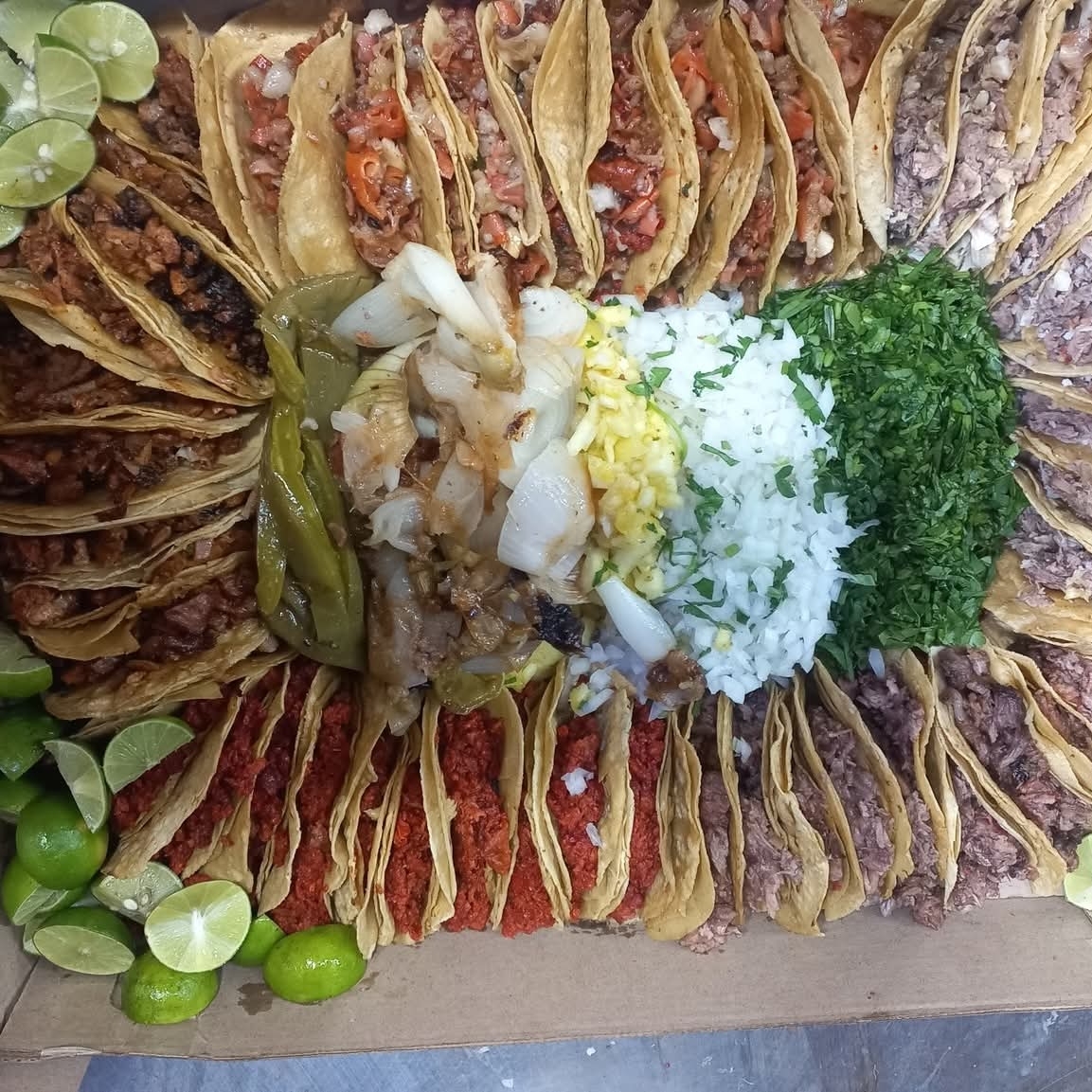 50 tacos de pastor acompañados de cebolla,cilantro,limones,cebollitas y nopales