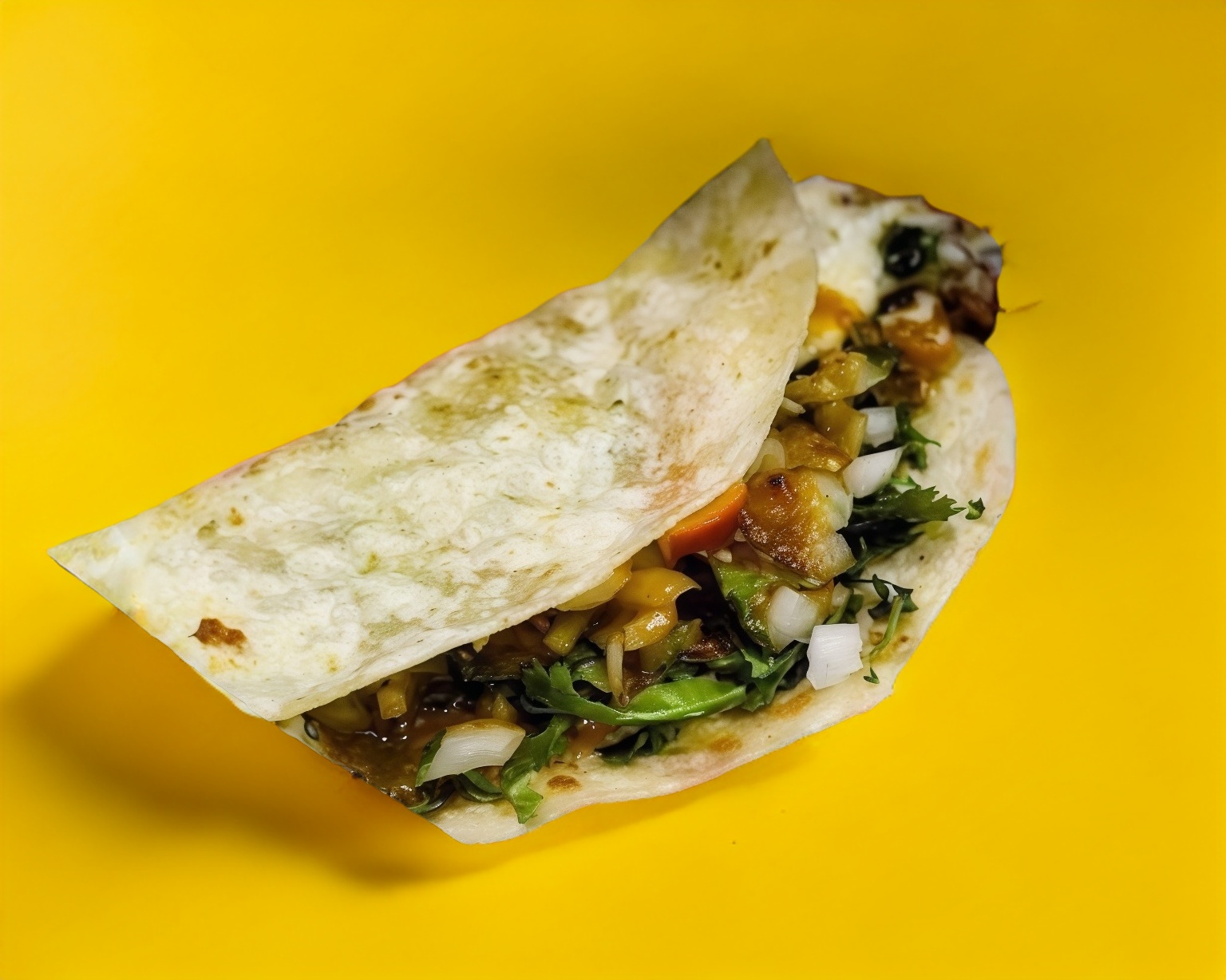 Gringa de Pastor: Tortilla de harina normal, carne de pastor, queso, vegetales por separado.