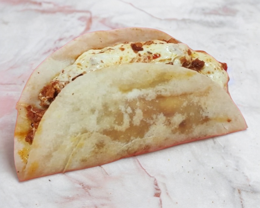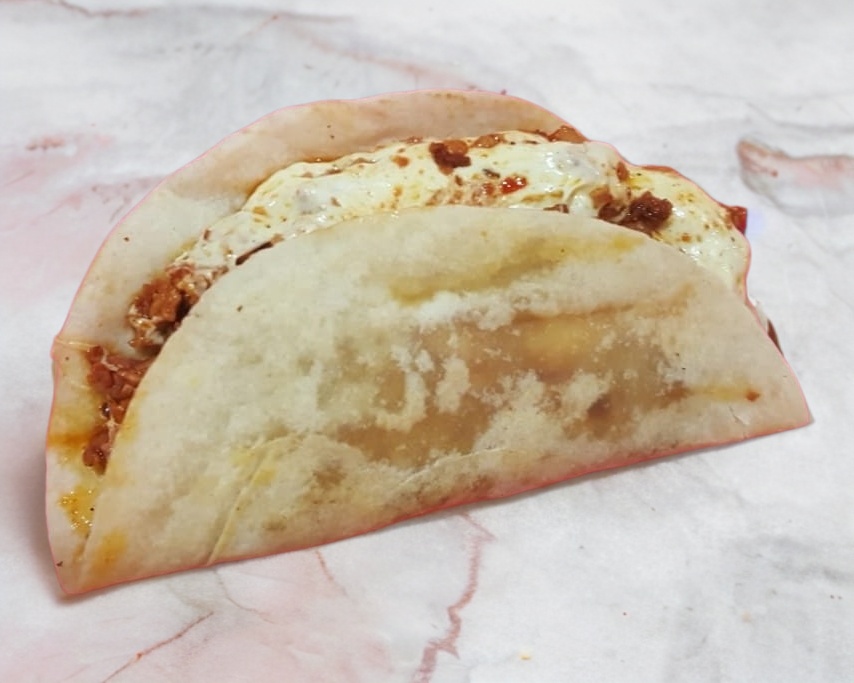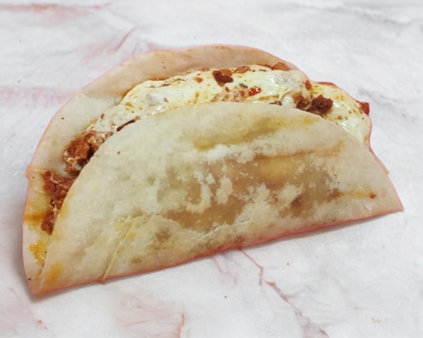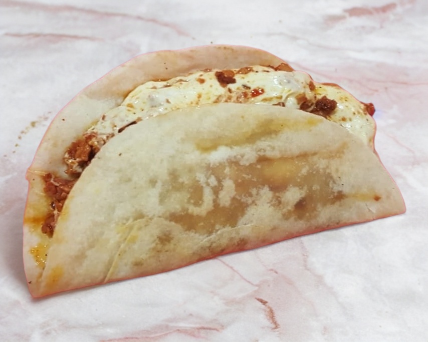 Tortilla de harina con pastor, queso y salsa a elegir.