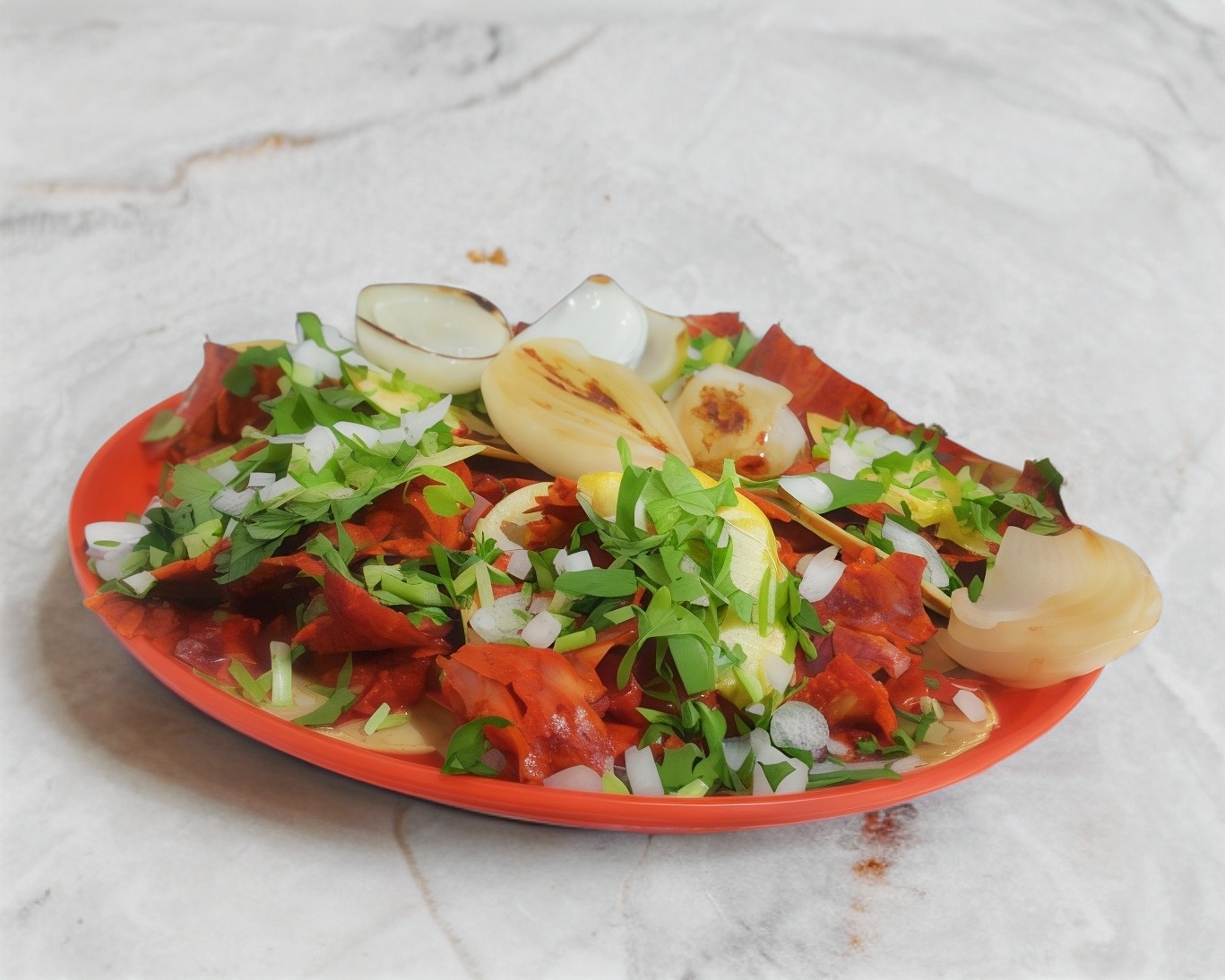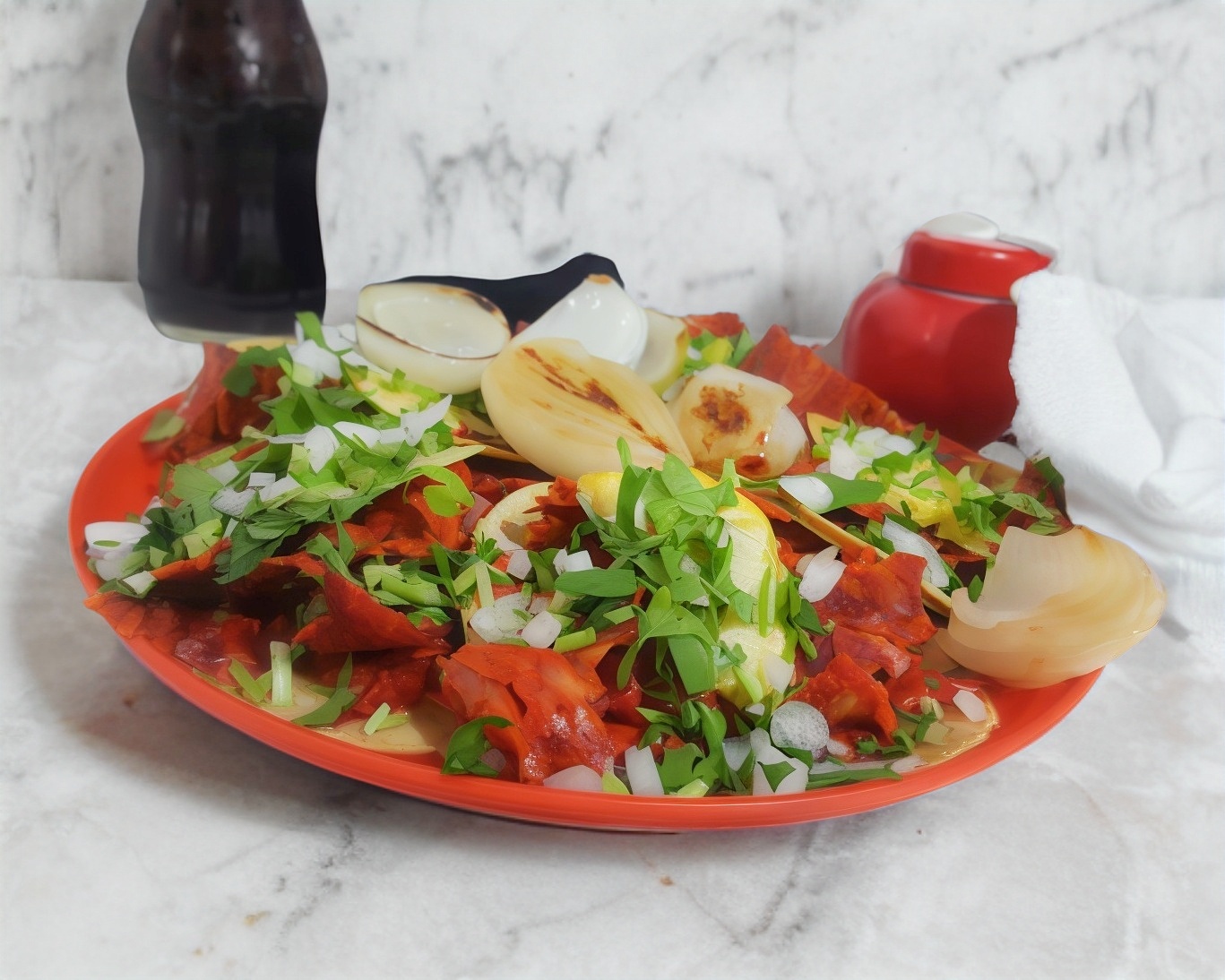 Cebolla, cilantro, salsa roja, salsa verde y cebolla cambray (porción personal).