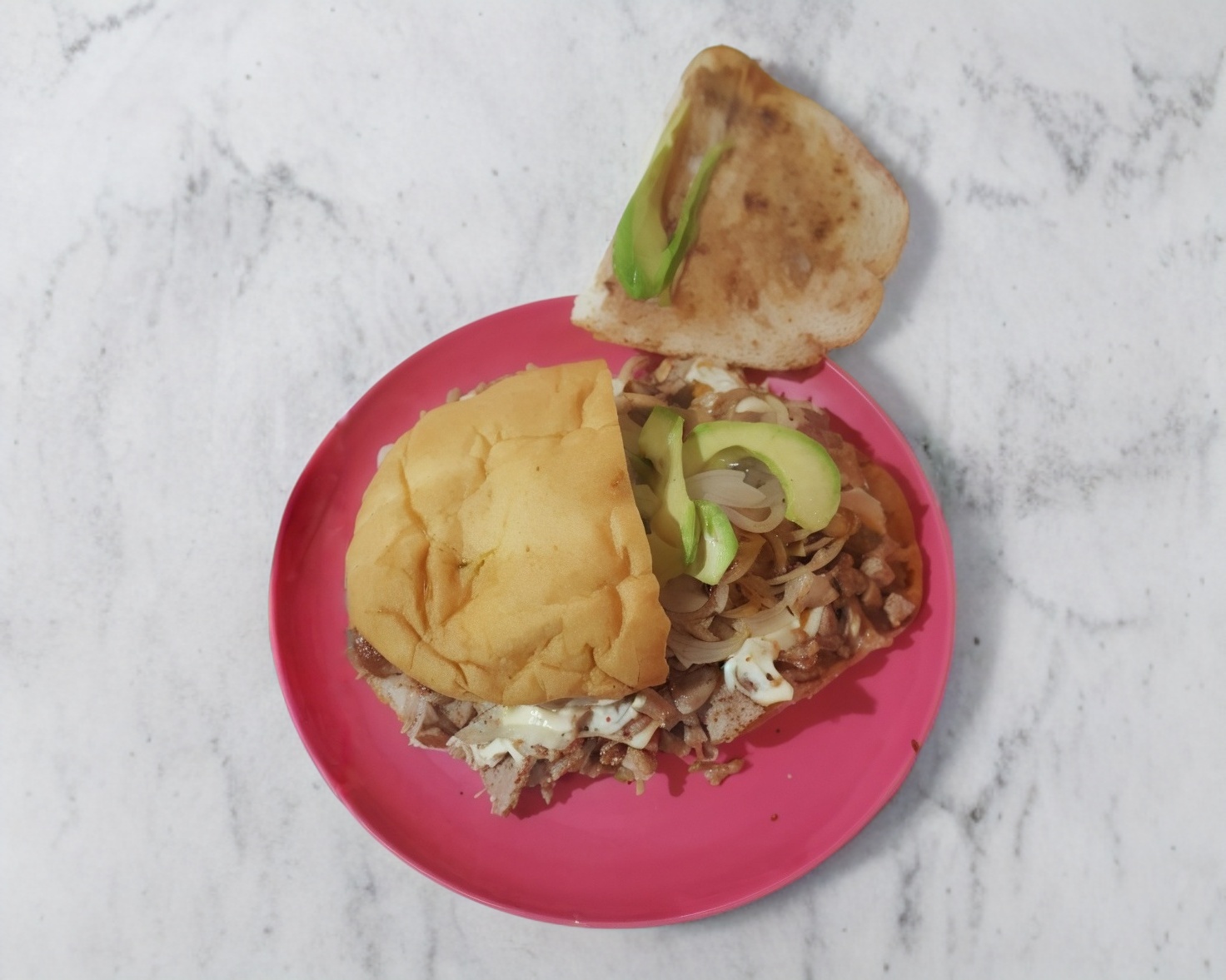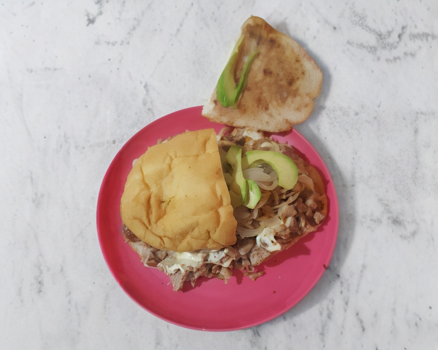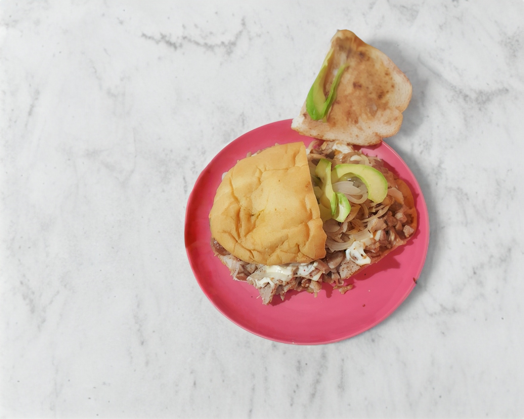 Aguacate, cebolla y queso oaxaca.