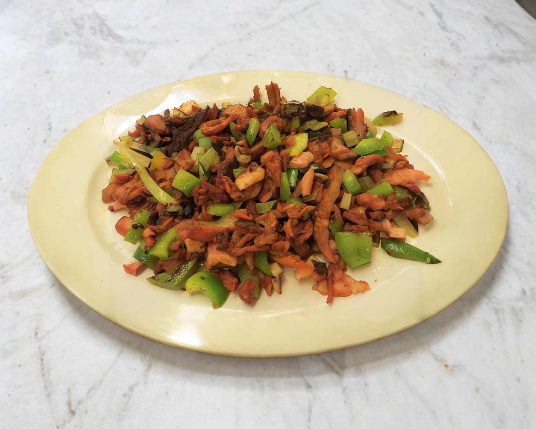 Pastor y suadero con morrón, cebolla y queso oaxaca, incluye tortillas y ambas salsas (roja y verde) porción personal.