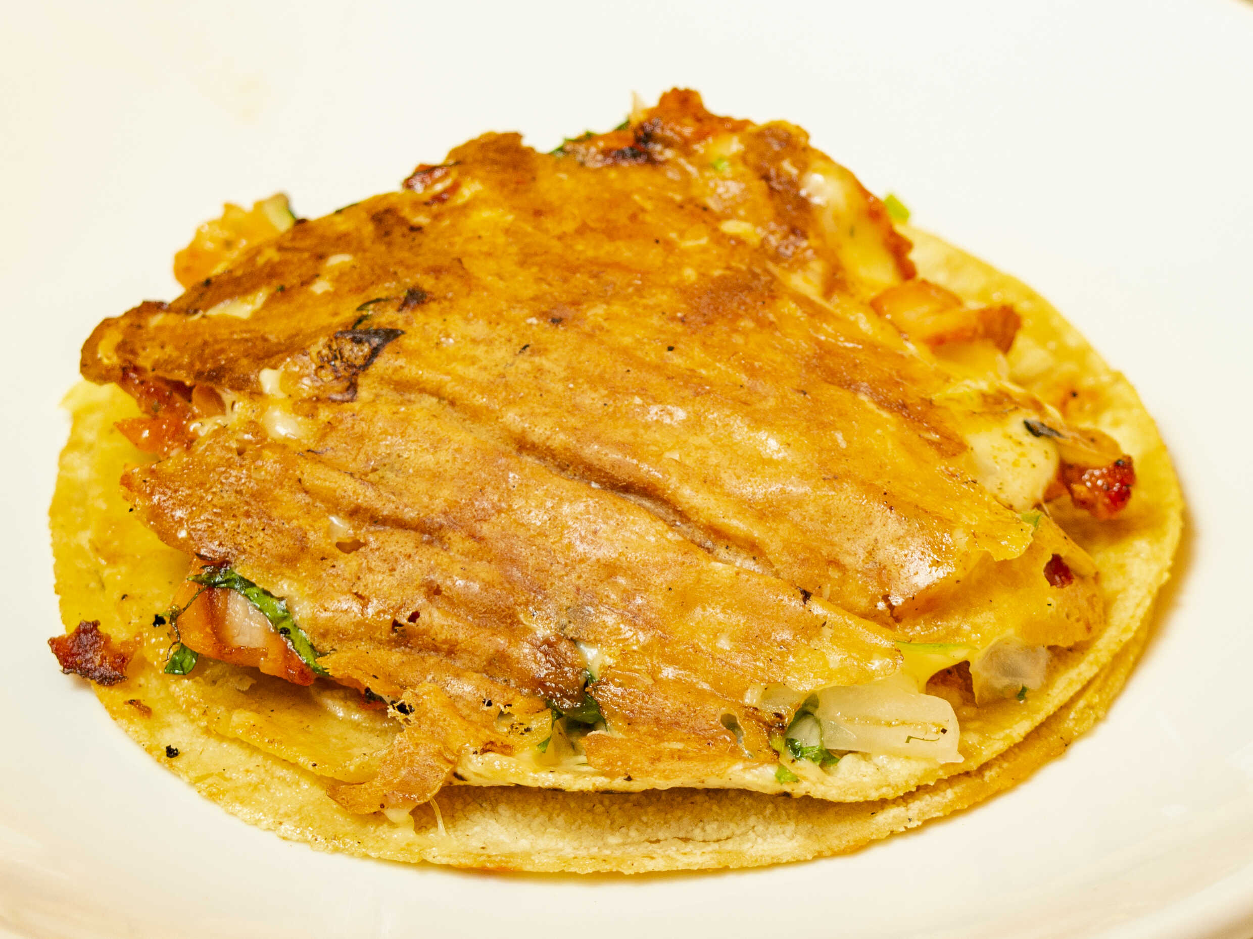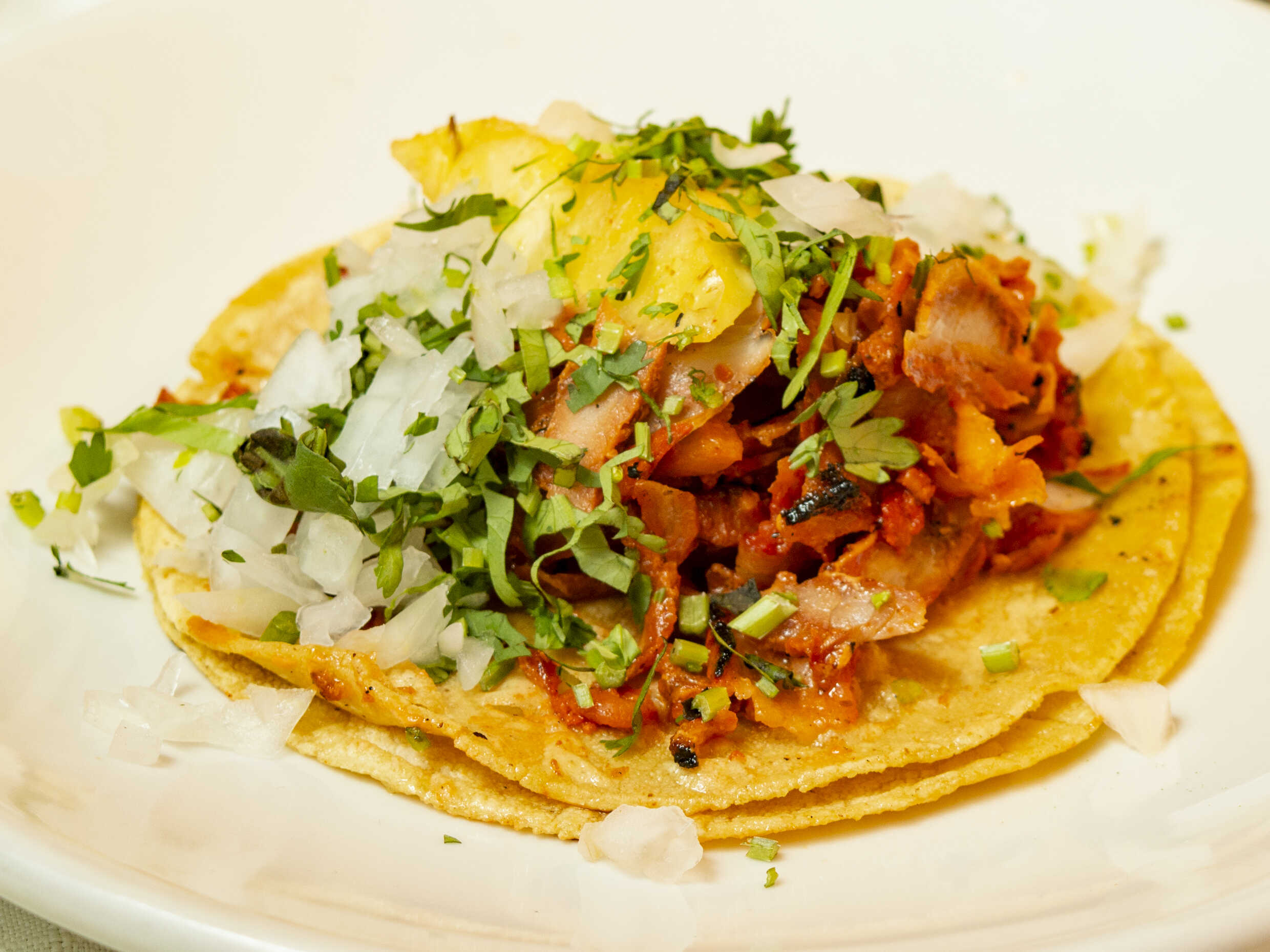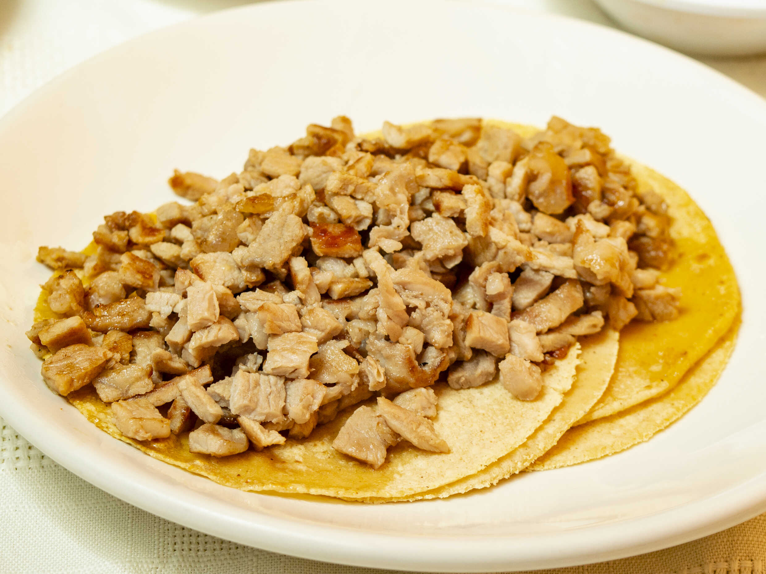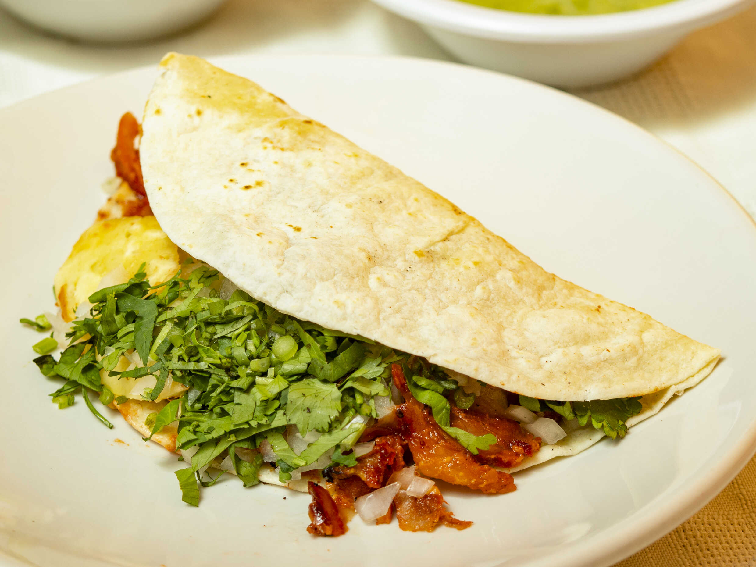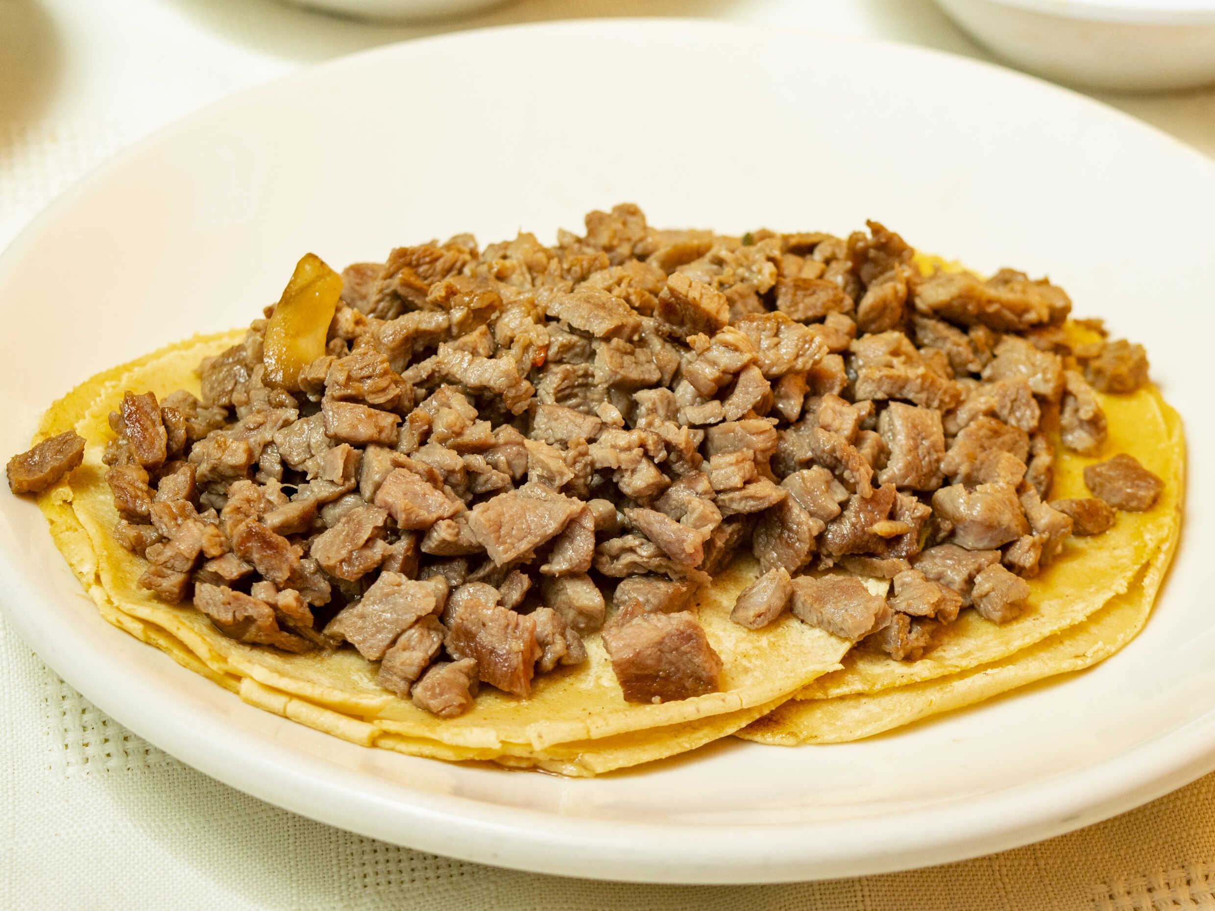 Tortilla, cilantro, cebolla, chorizo y suadero.