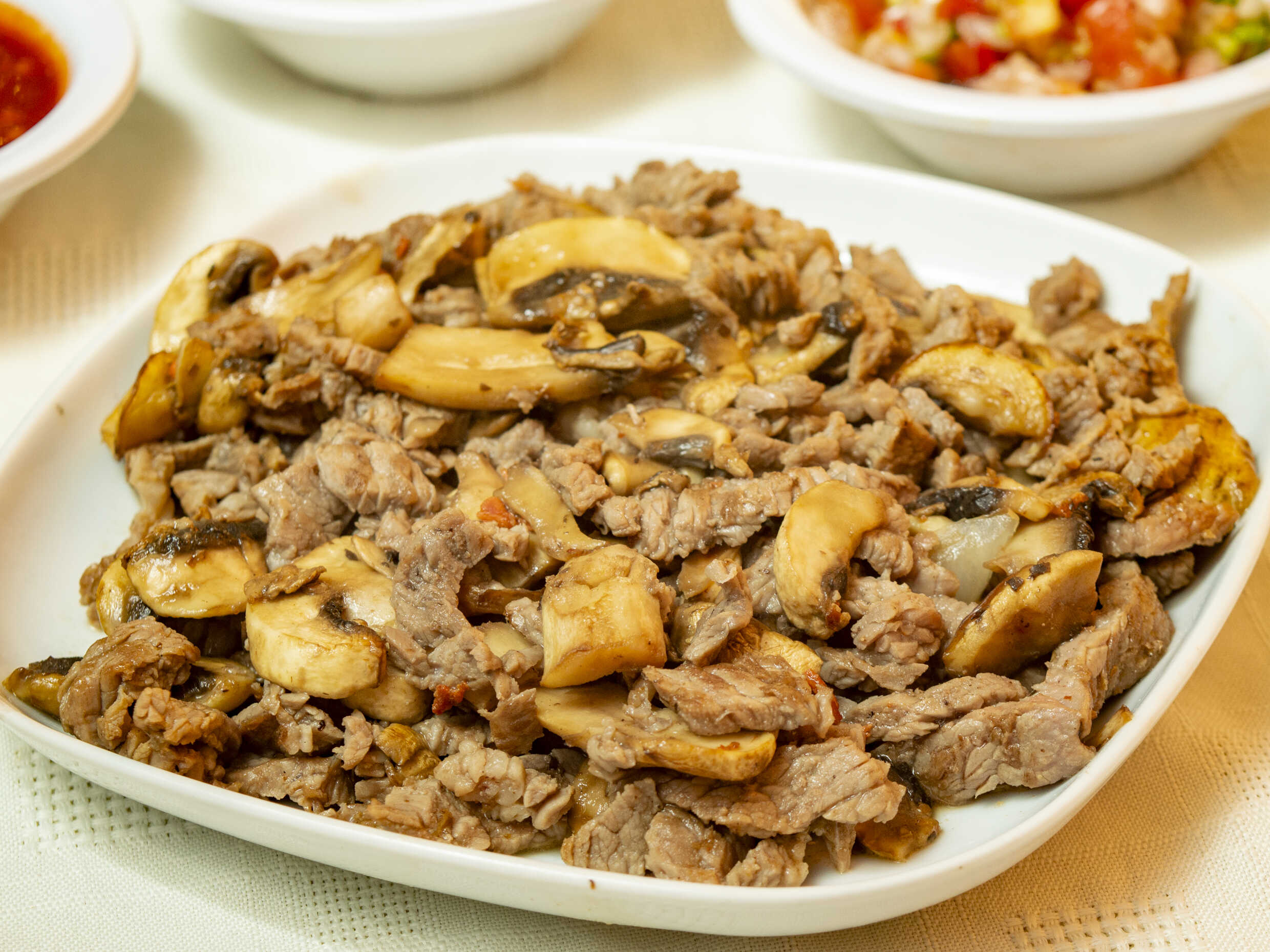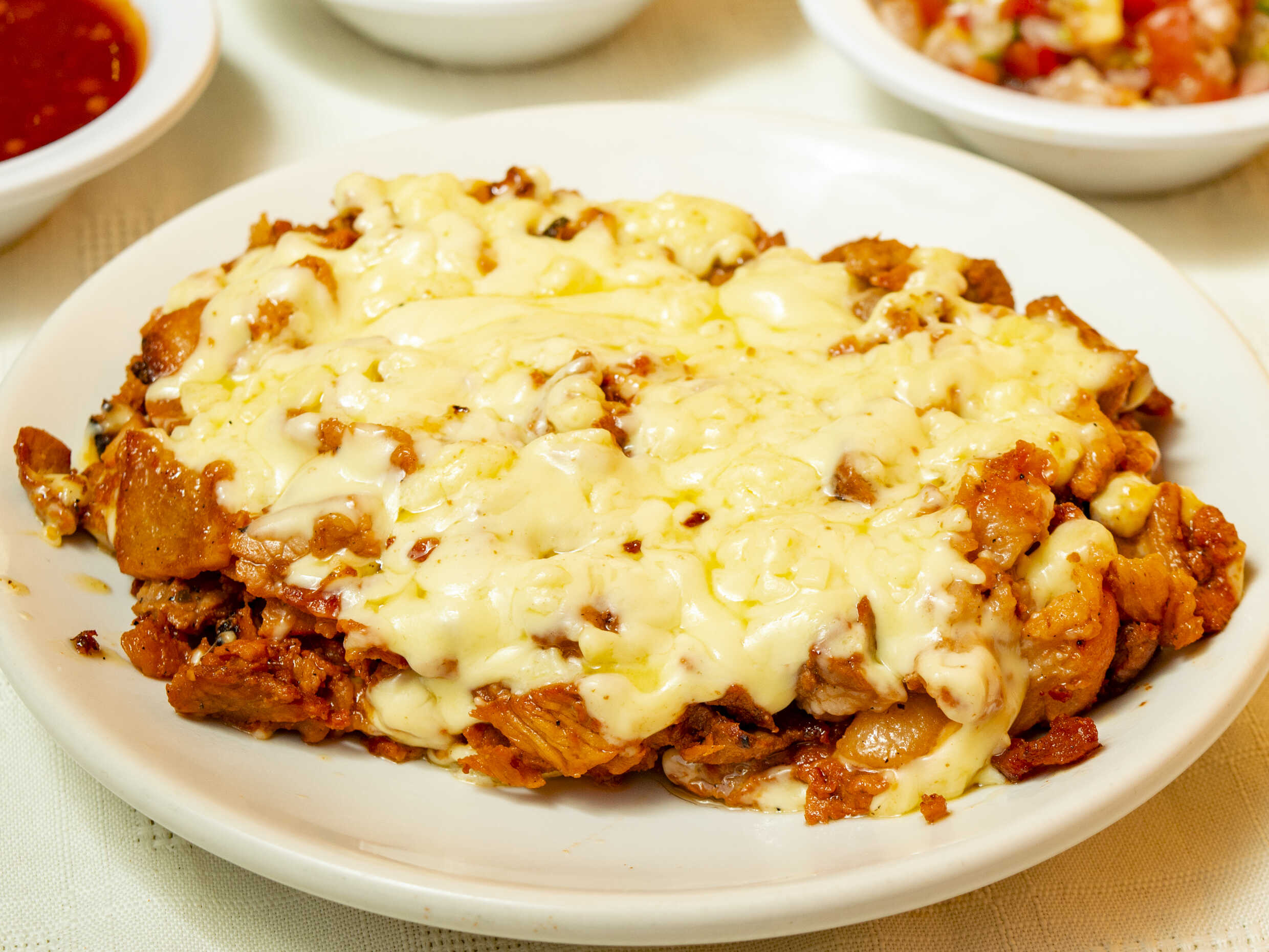 Chuleta, Suadero, Chorizo, Nopales, Champiñones, Jitomate, Cebolla, Aguacate y Queso.