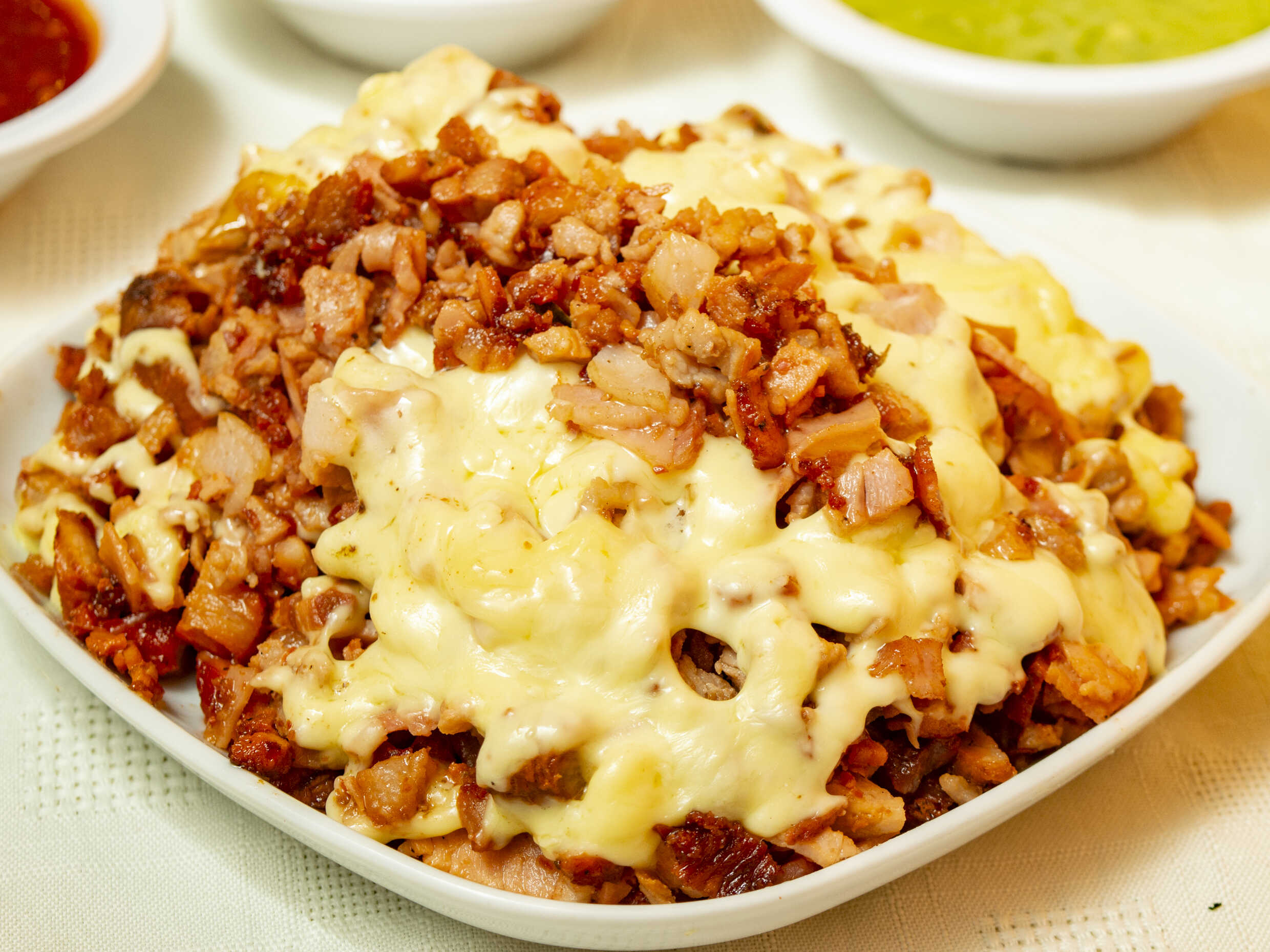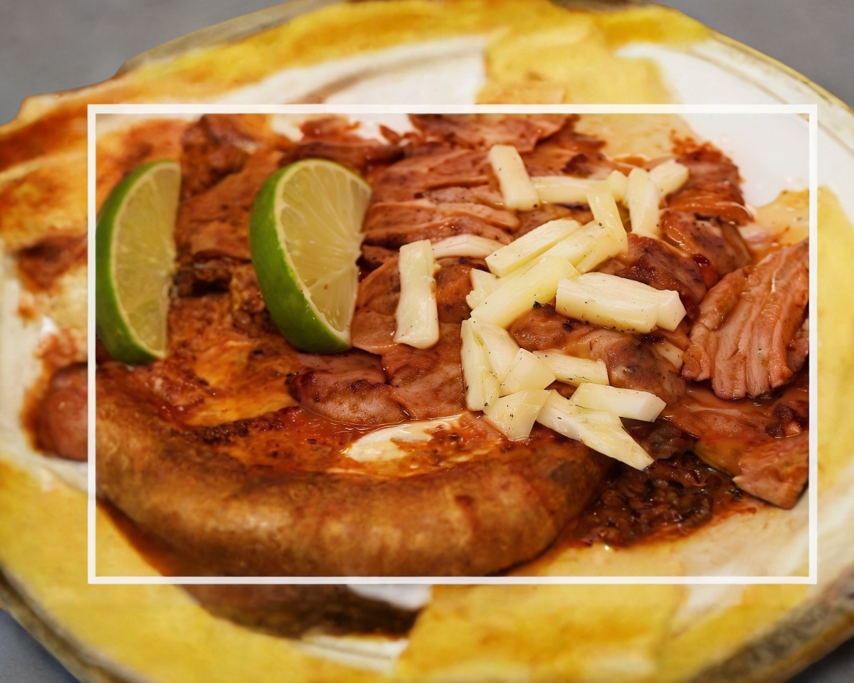 Chuleta, Pastor, Champiñones, Jitomate, Cebolla, Frijoles, Aguacate y Queso.