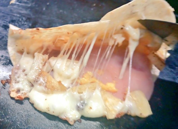 5 Tortillas de harina, bistec, jamon, piña y queso.
