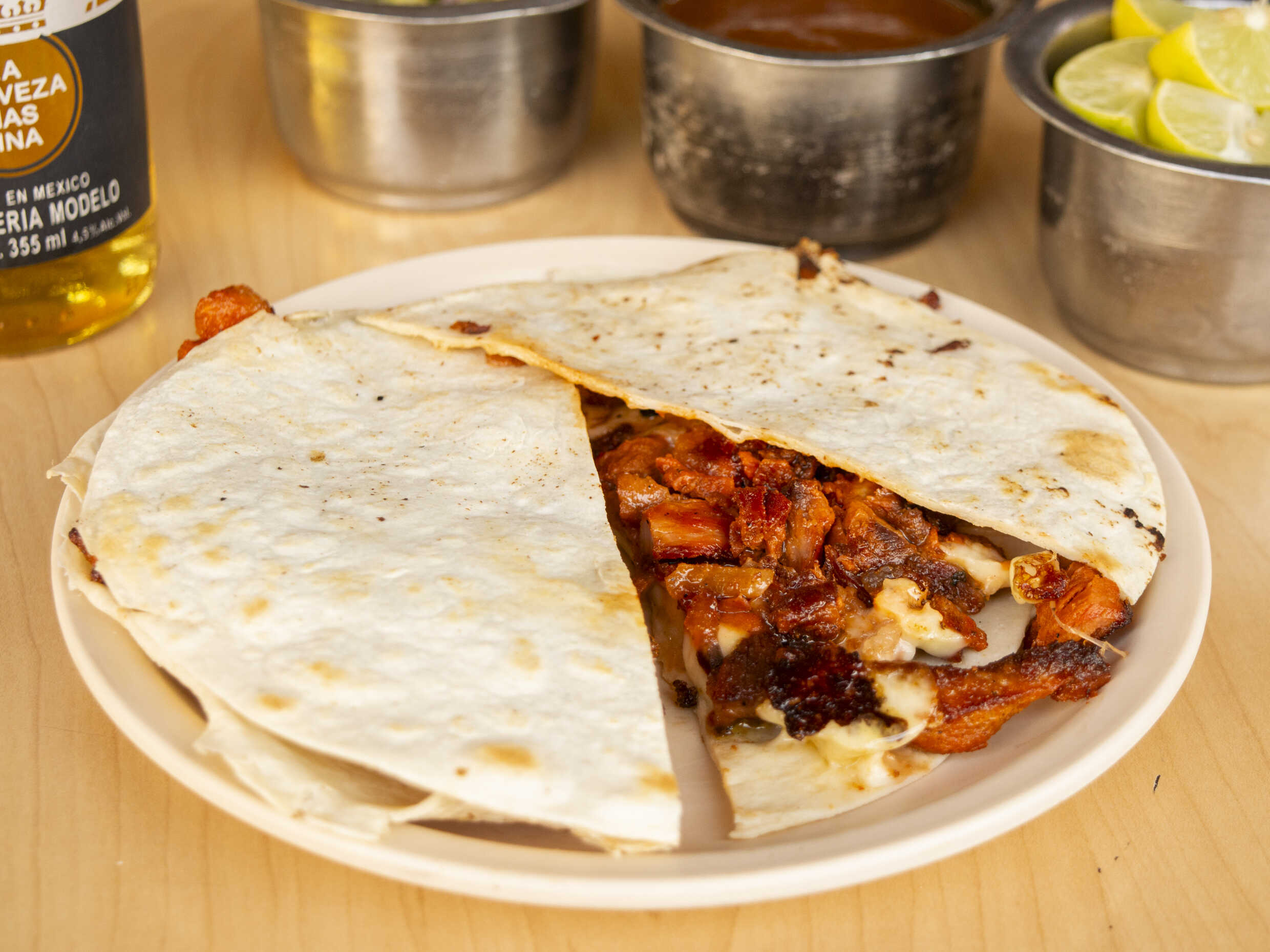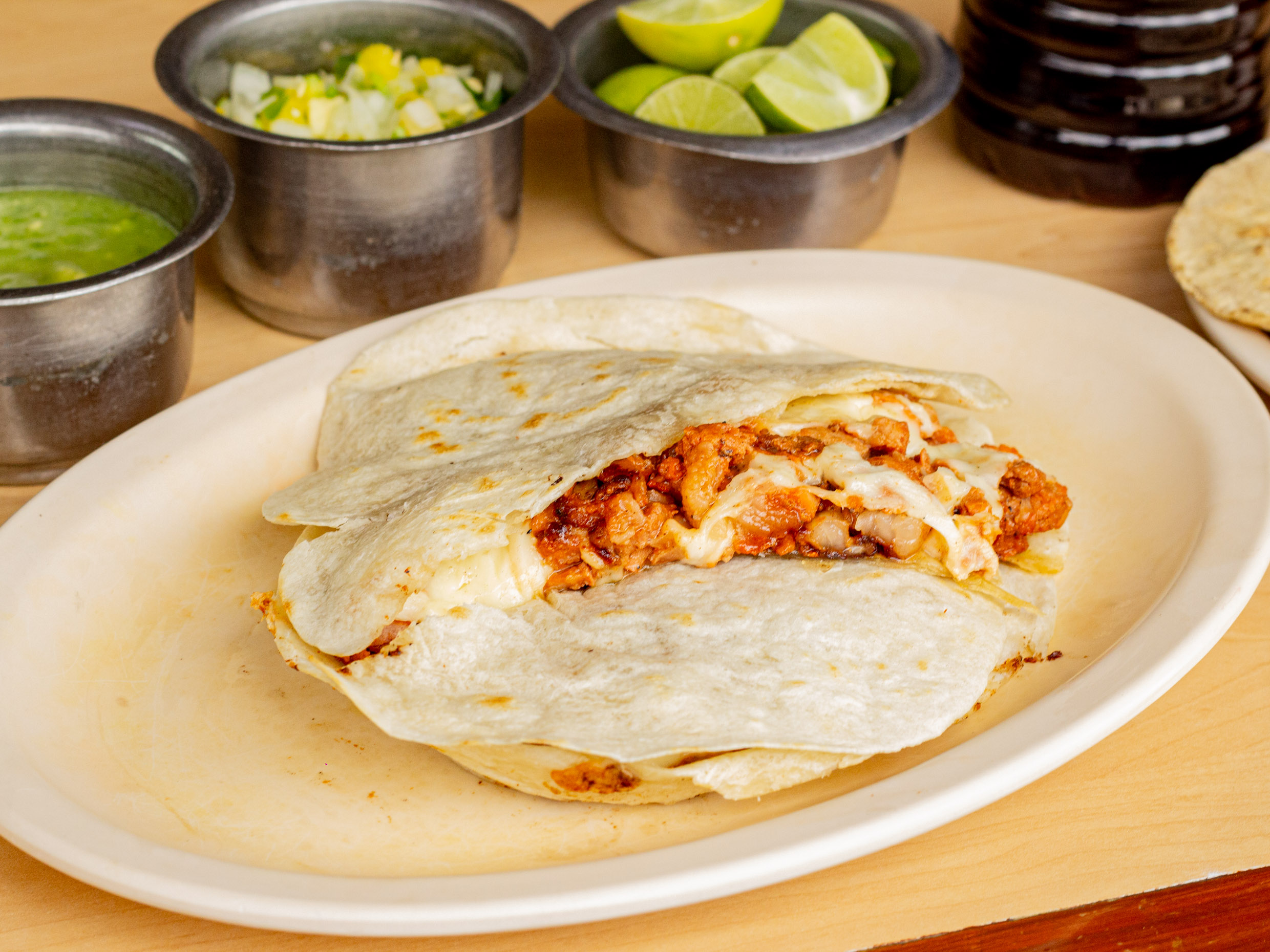 Sincronizada de carne al pastor con queso.