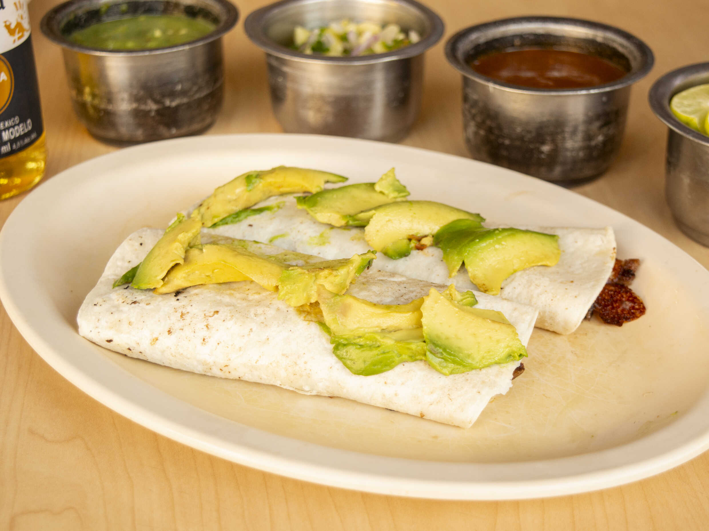 Bistec con queso y aguacate en tortilla de harina ( orden de 2 )