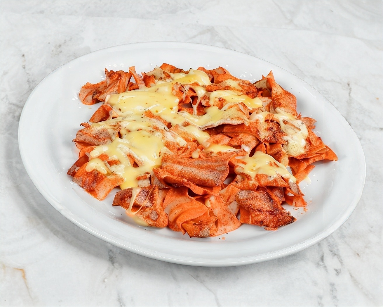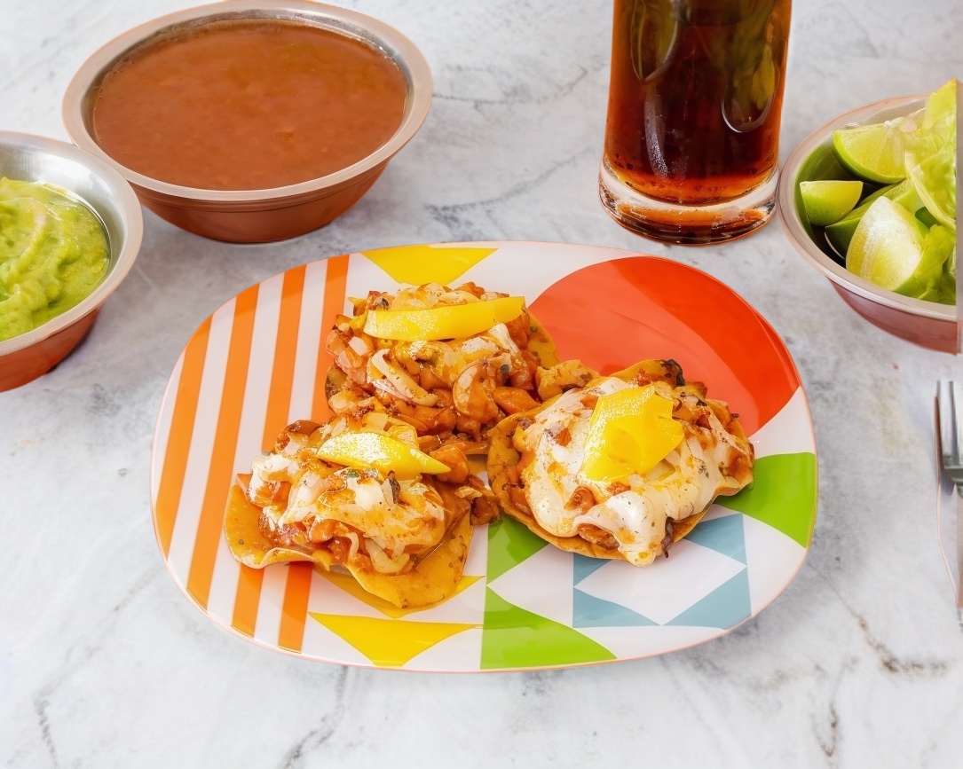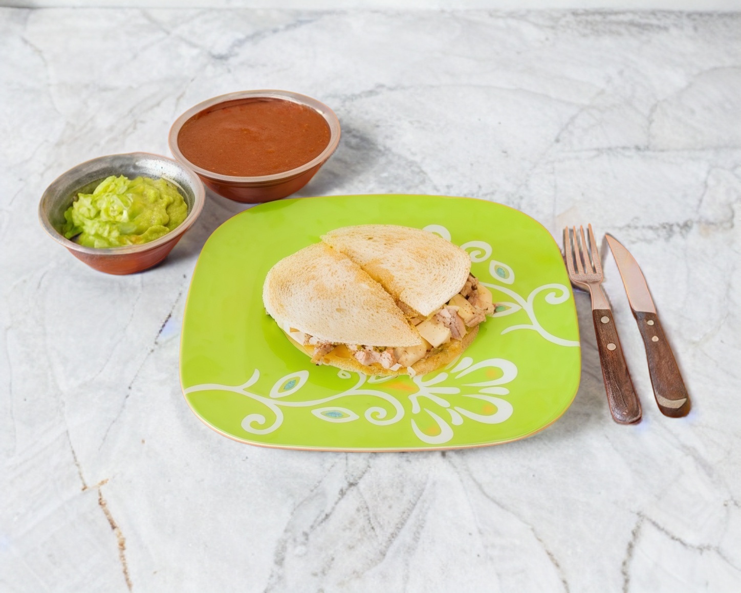 Dos tortillas de harina, con pastor y queso. Incluye salsa.
