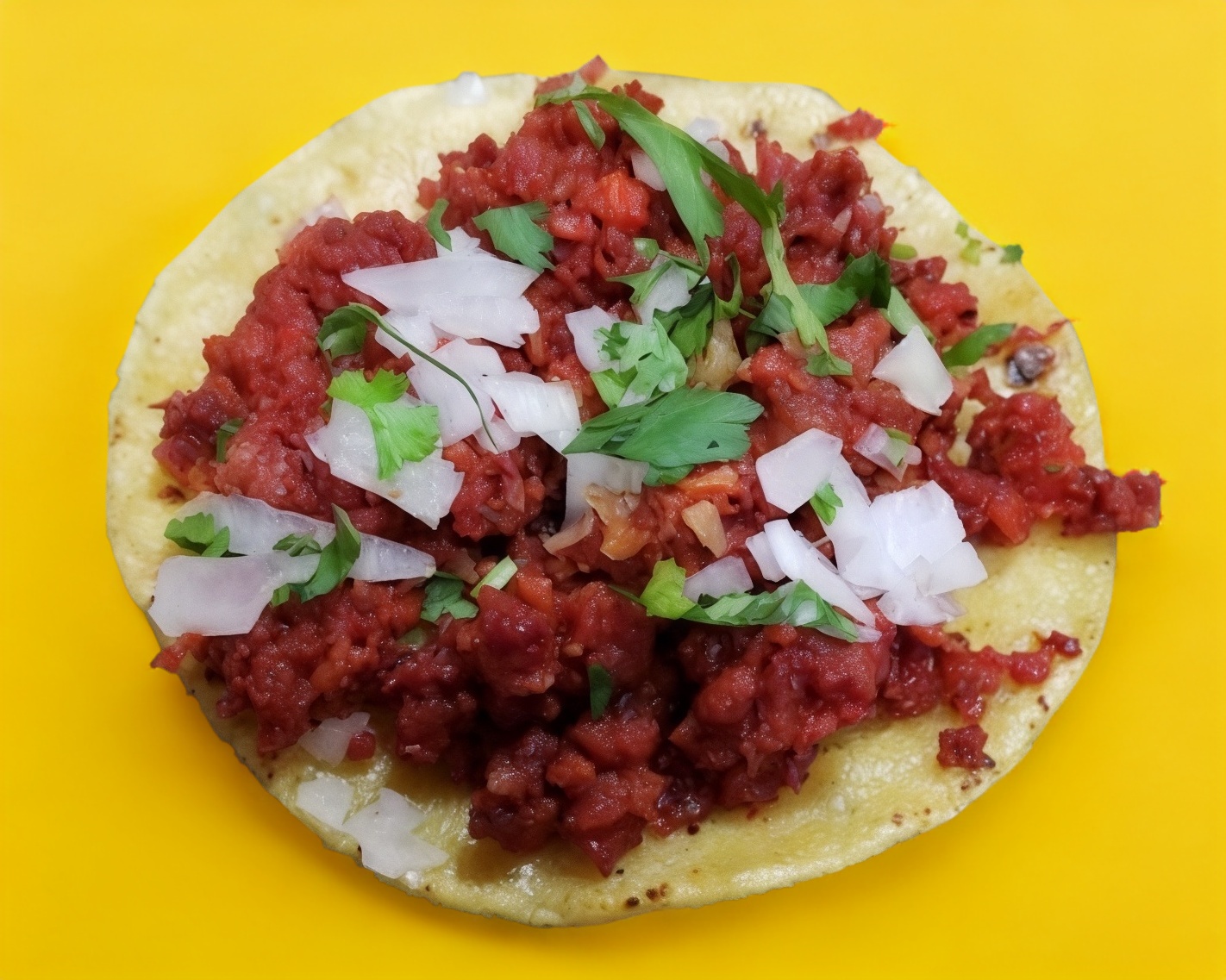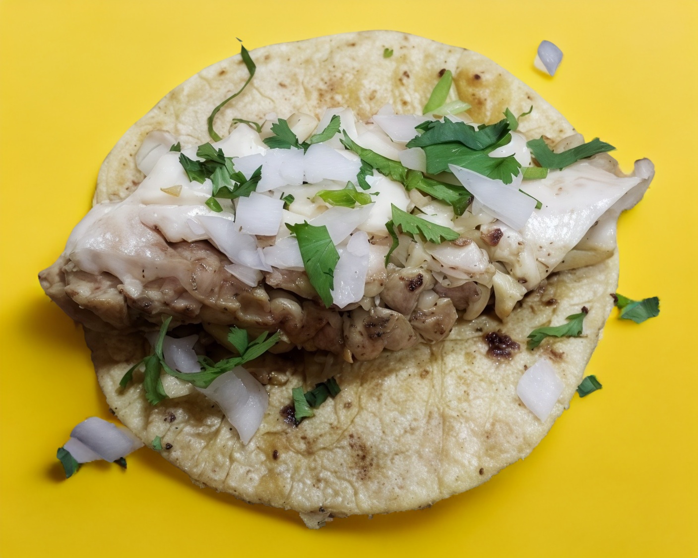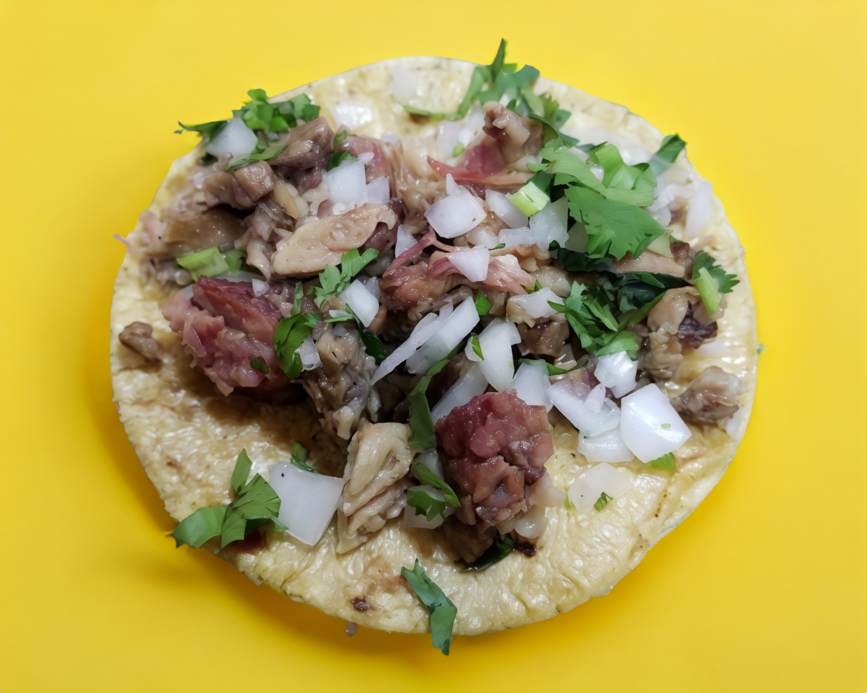 Taco de sesos servido en tortilla de maíz.