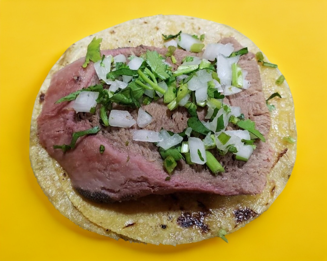 Taco de lengua servido en tortilla de maíz.