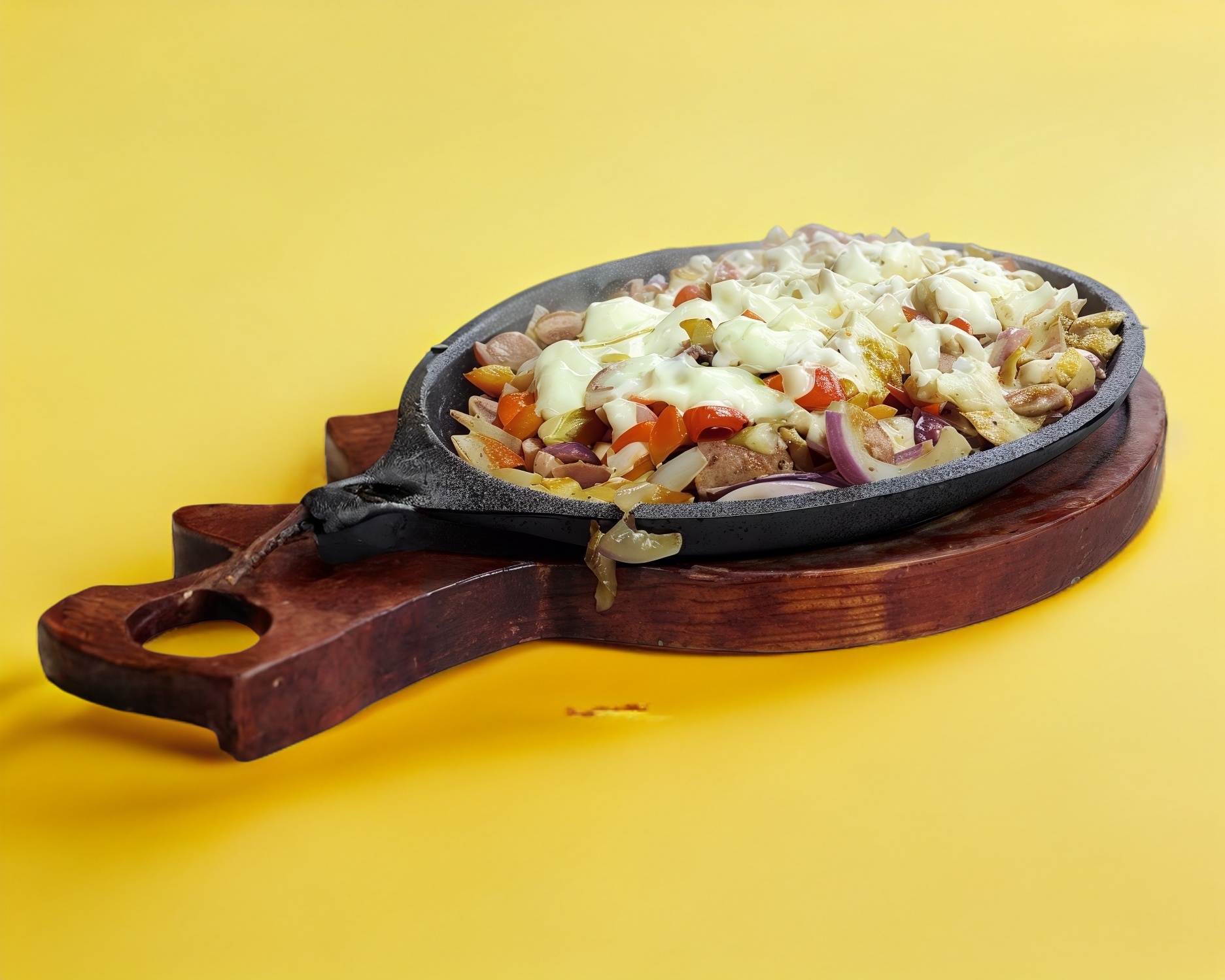 Tortilla con sudadero, cebolla y queso.