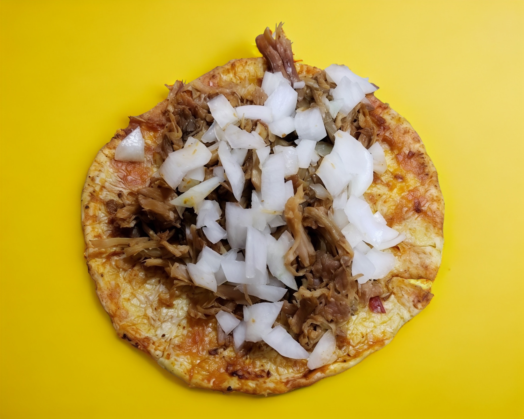 Tortilla con pastor, queso, cebolla y cilantro.