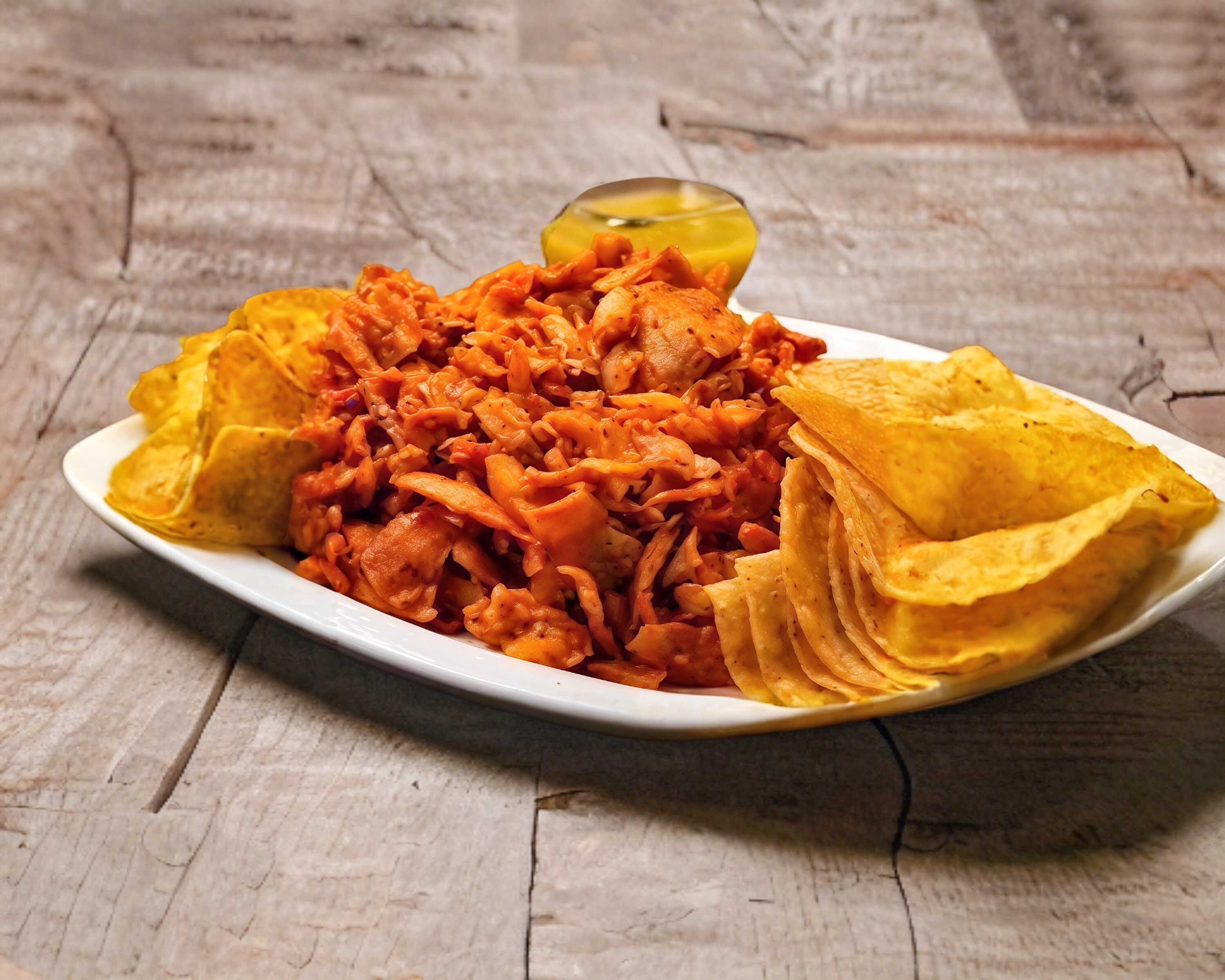 Con tomate, chile de árbol seco y habanero.