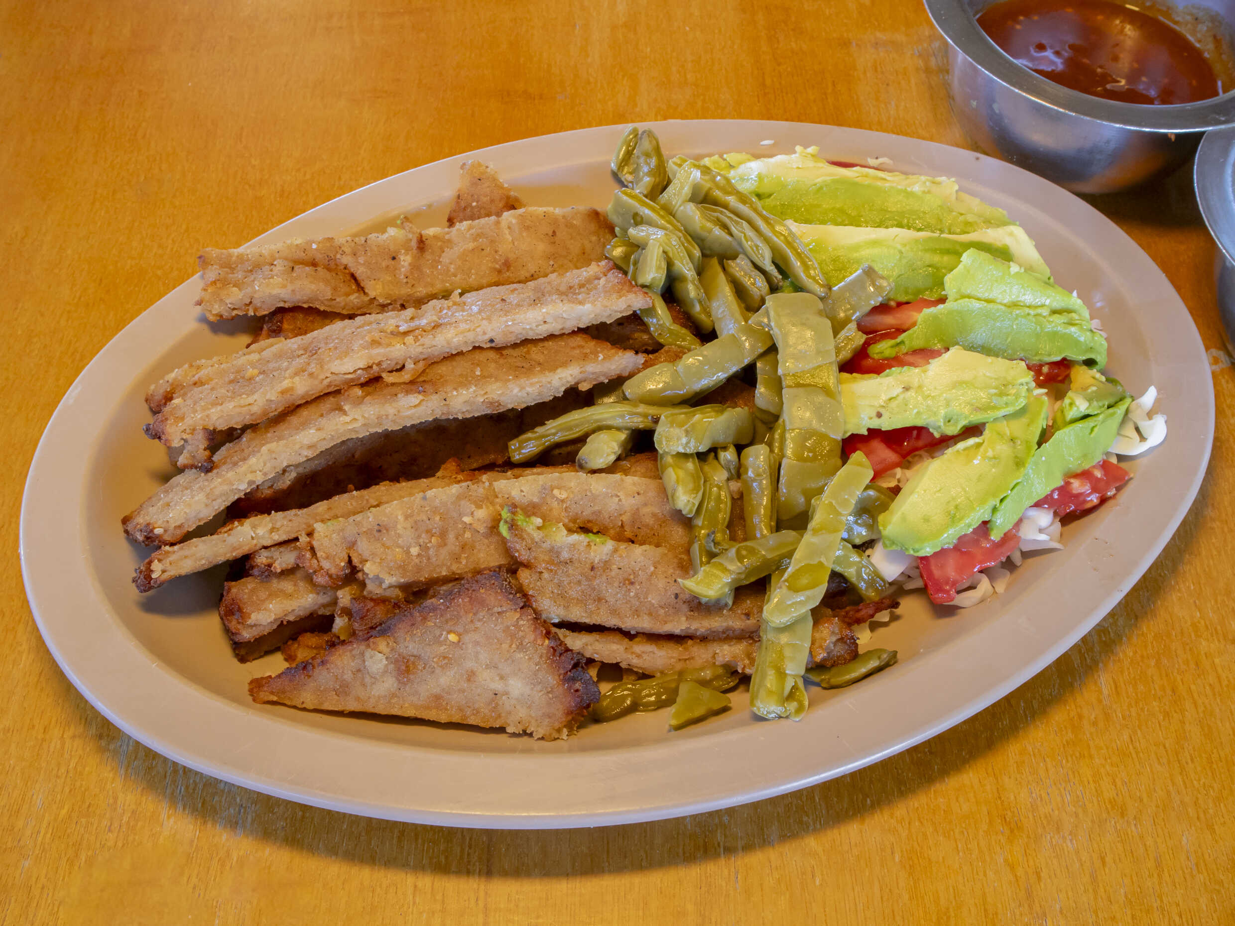 Milanesa Dorada Con Verdura, Nopales Y Tortillas