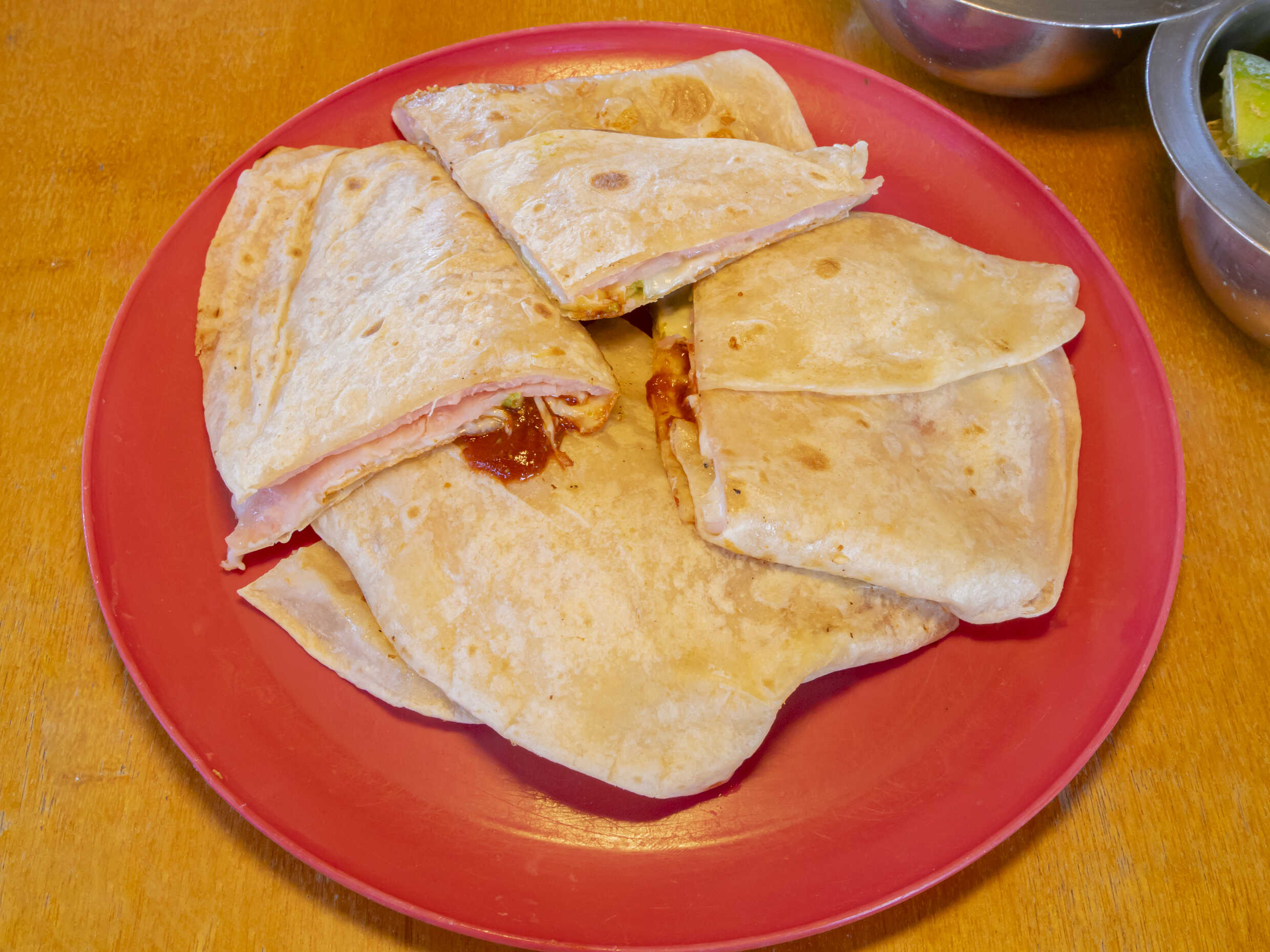 Tortilla De Harina, Jamón, Queso Amarillo, Oaxaca, Aguacate, Y Chipotle