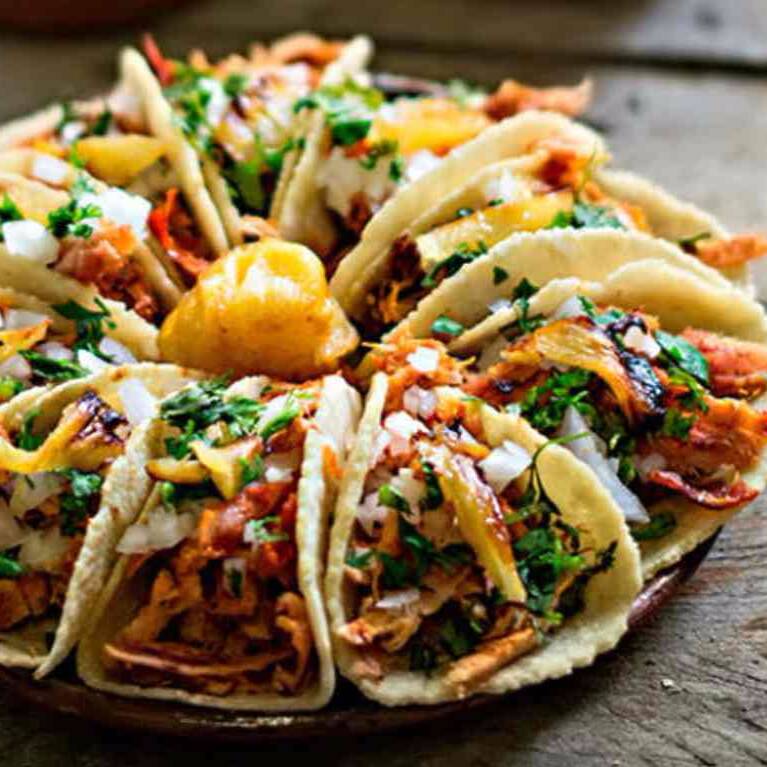 Tacos de pastor carne de cerdo adobada al pastor