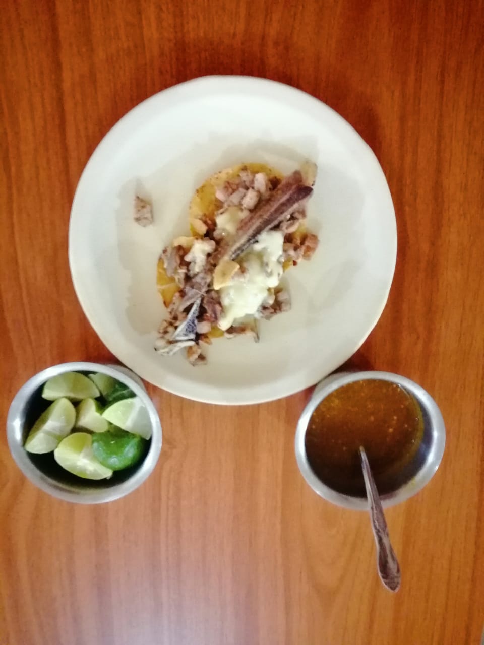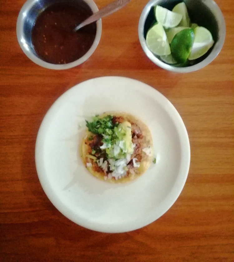 incluye tortilla, Carne al pastor, cebolla y cilantro 20gr salsa verde o roja segun disponididad