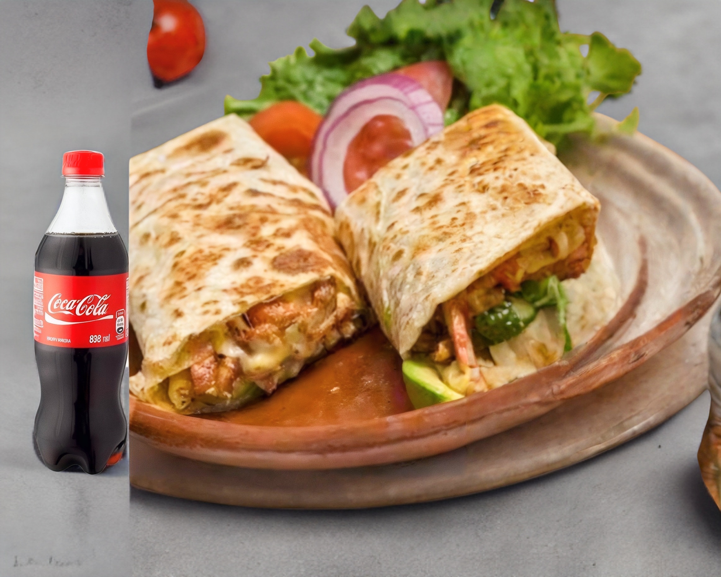 Burrito de bistec con tortilla de harina y Coca Cola de 600ml.