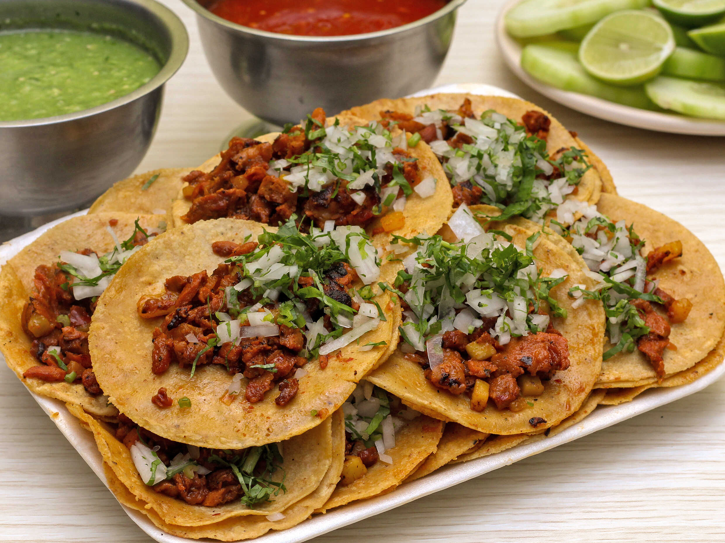 10 Tacos de deliciosa carne al pastor marinada, servida en 2 tortillas del número 11, encima cebolla cilantro y la tradicional piña.