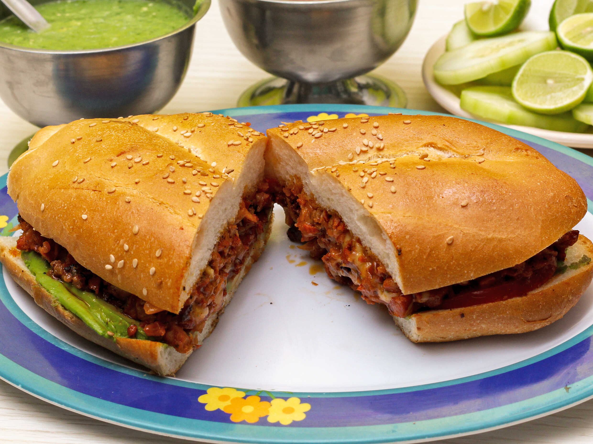 Preparadas con pan artesanal tipo telera grande con ajonjolí, acompañadas de aguacate jitomate y tripa con queso fundido.