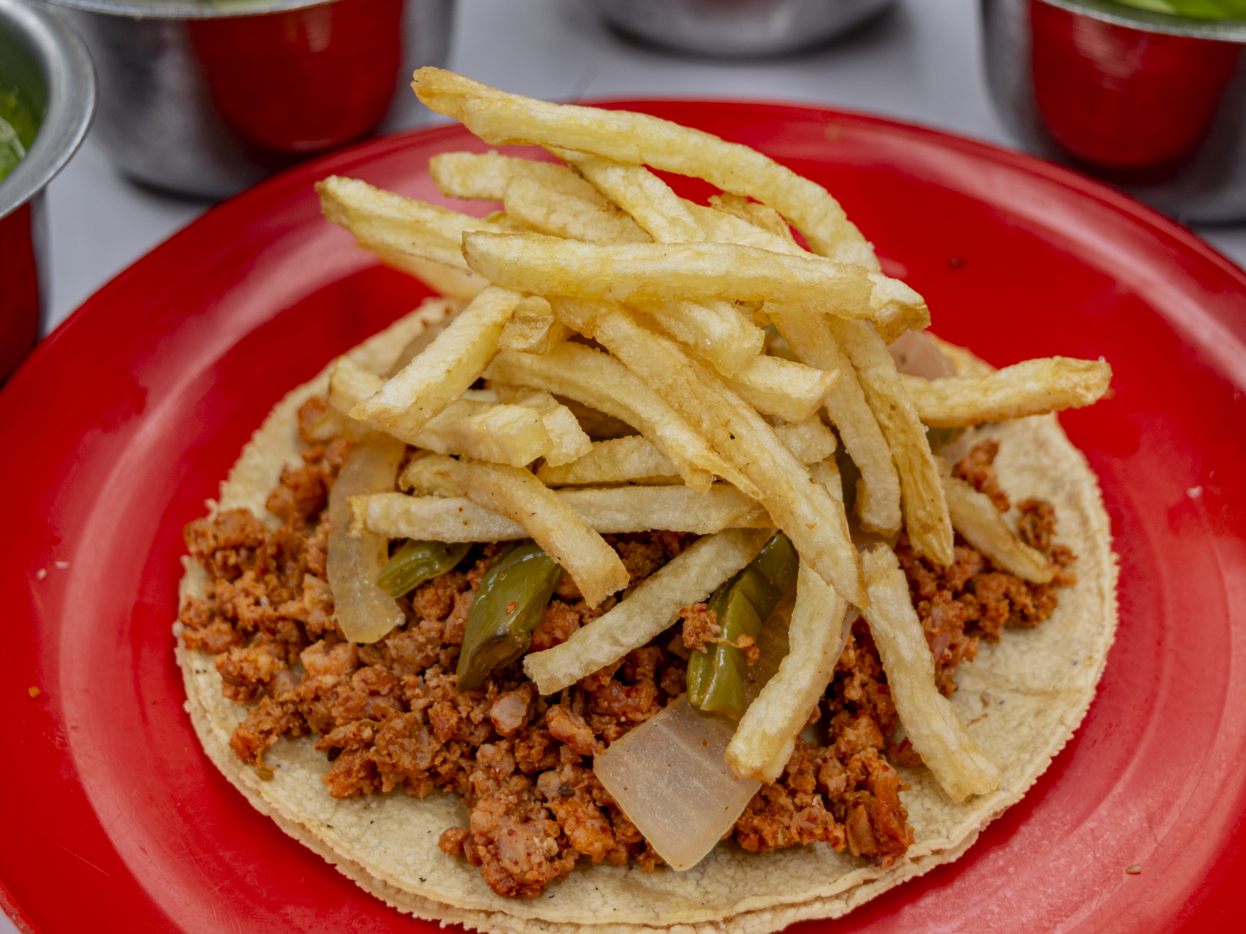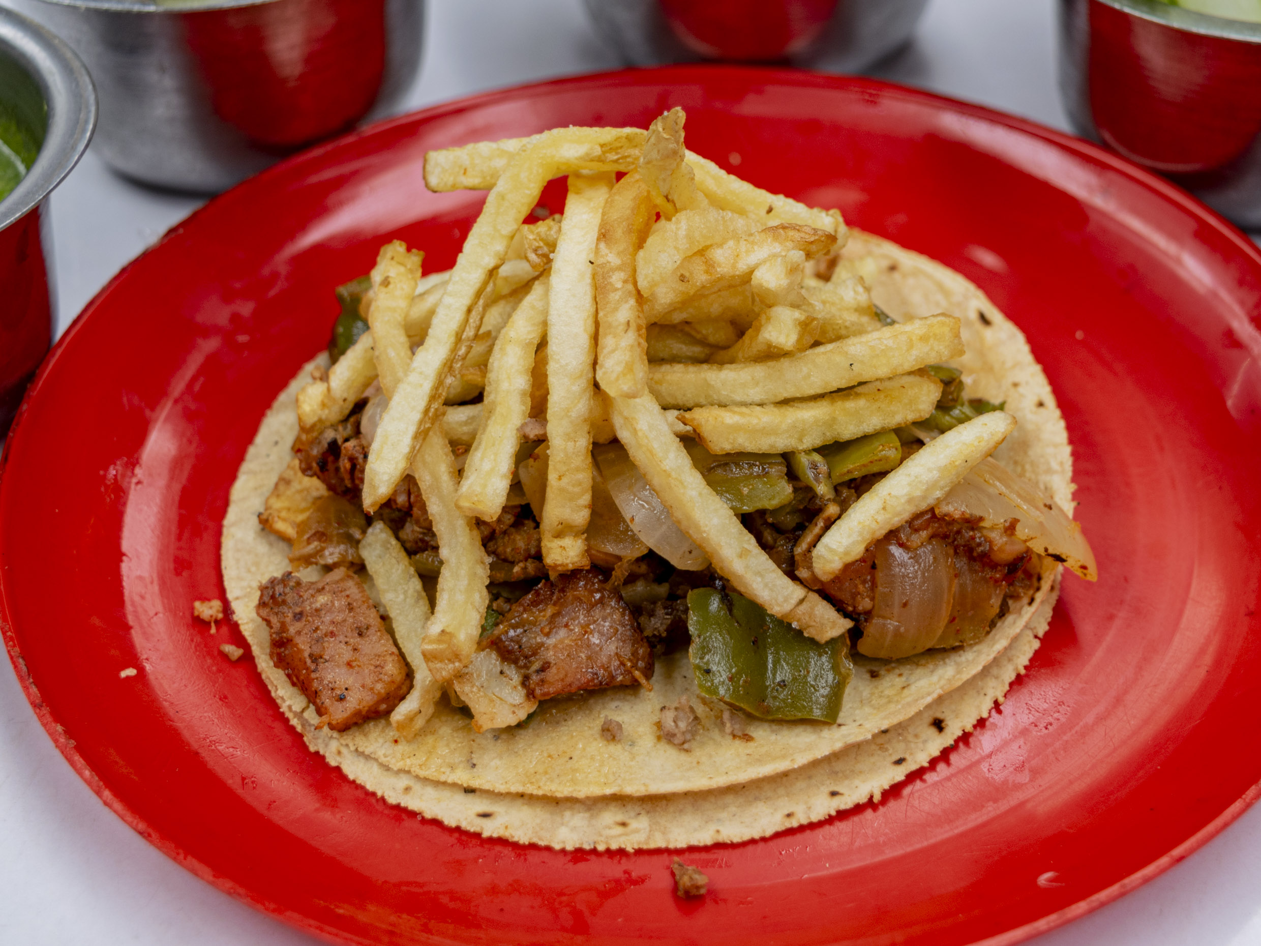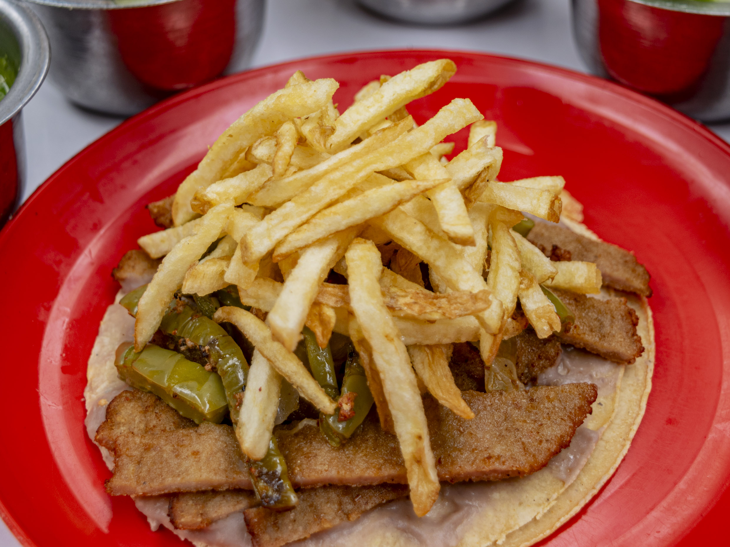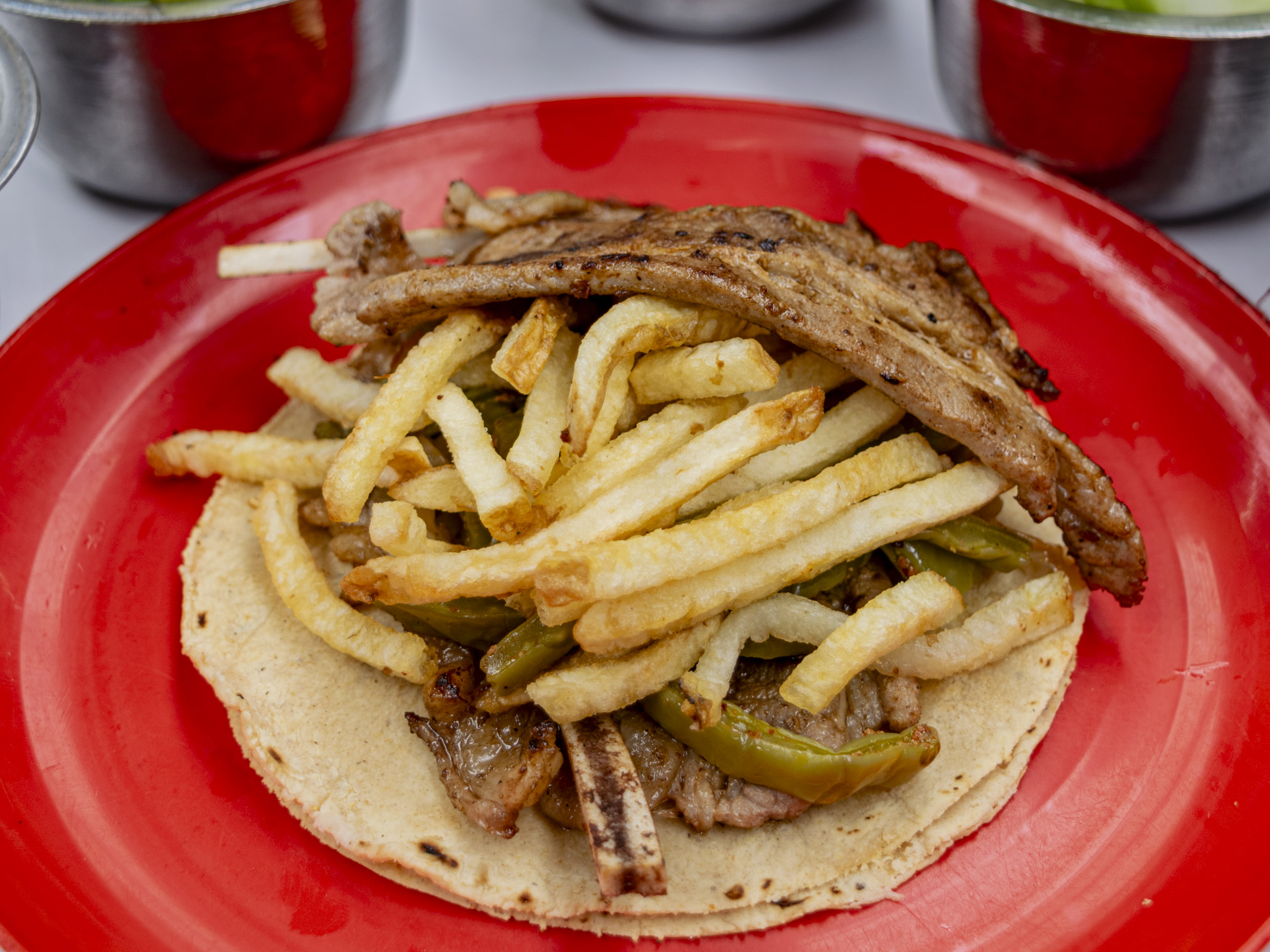Preparado con 30 gramos(aprox.) de carne de res jugosa y bien doradita, es la opción perfecta para satisfacer tu antojo. Puedes pedirlo solo o acompañado de nopales, cebolla cocida o papas a la francesa, según tu preferencia. Y para complementar tu comida, nada mejor que una refrescante agua natural de 1 litro. ¡Un clásico irresistible!