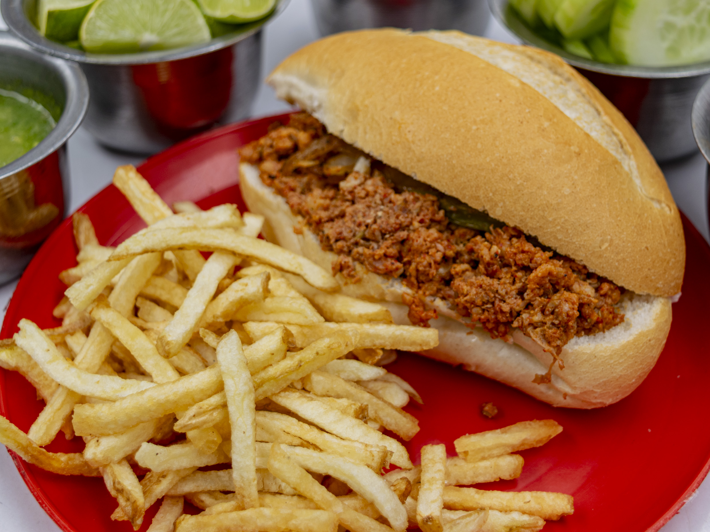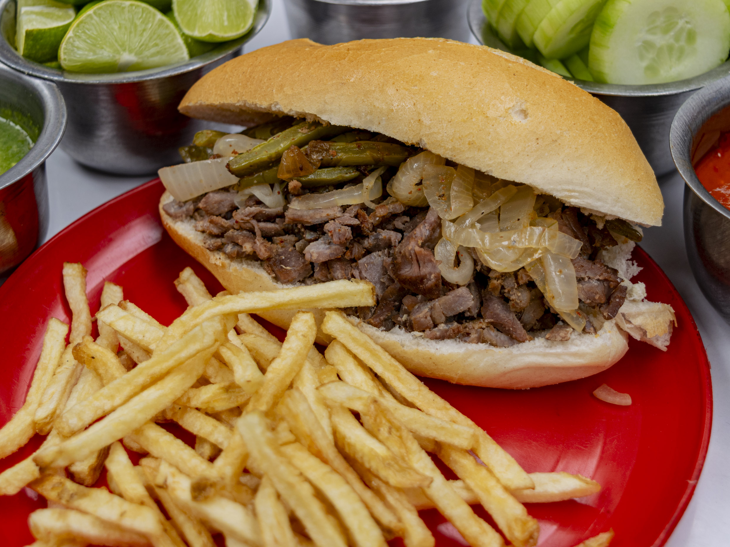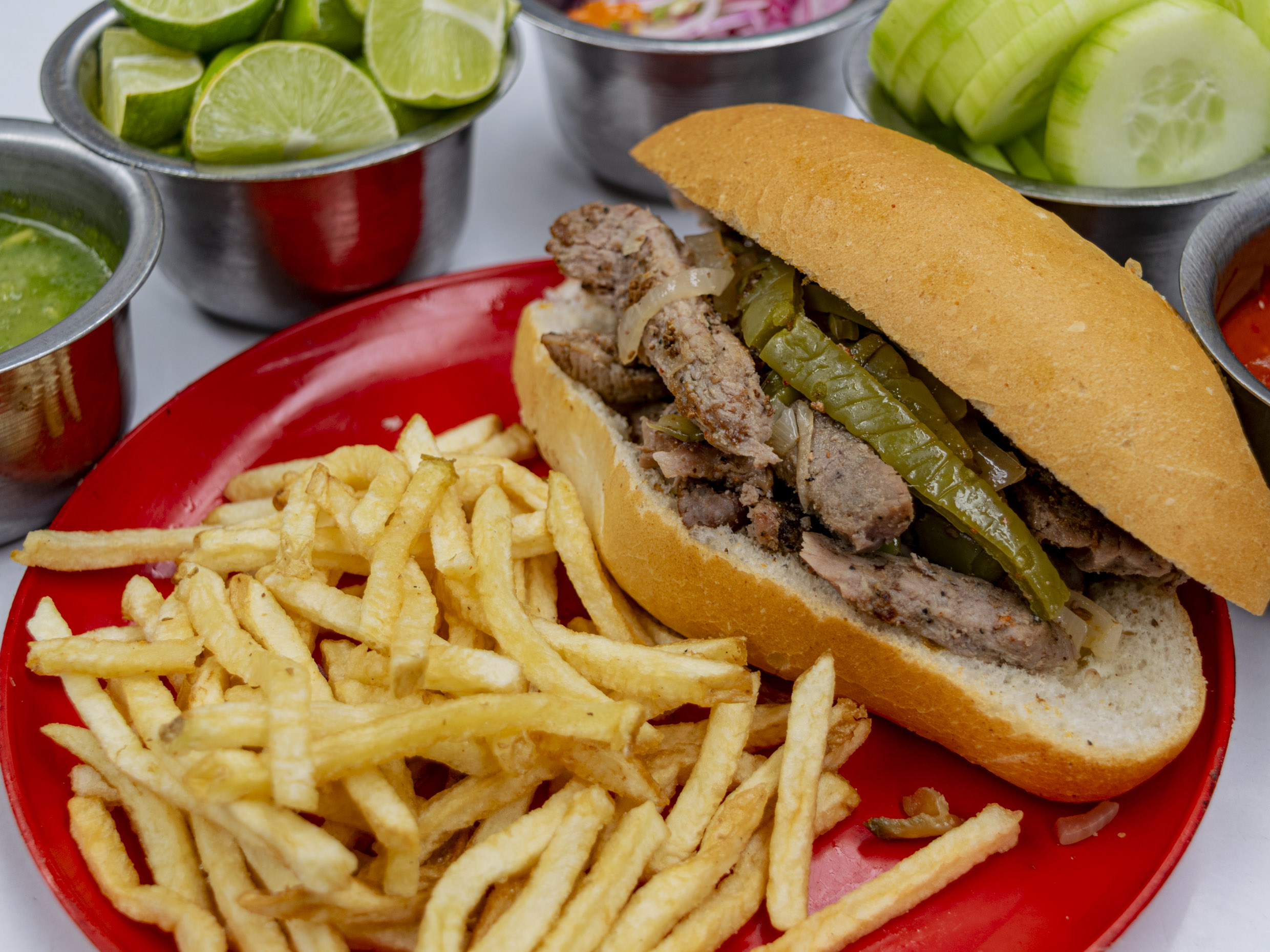 Preparada con 30 gramos(aprox.) de carne de res jugosa, servida en un bolillo crujiente. Puedes pedirla sola o acompañada de nopales, cebolla cocida o papas a la francesa. Acompáñala con un agua natural de 1 litro para completar la experiencia. ¡Sabor y tradición en cada bocado! 😉