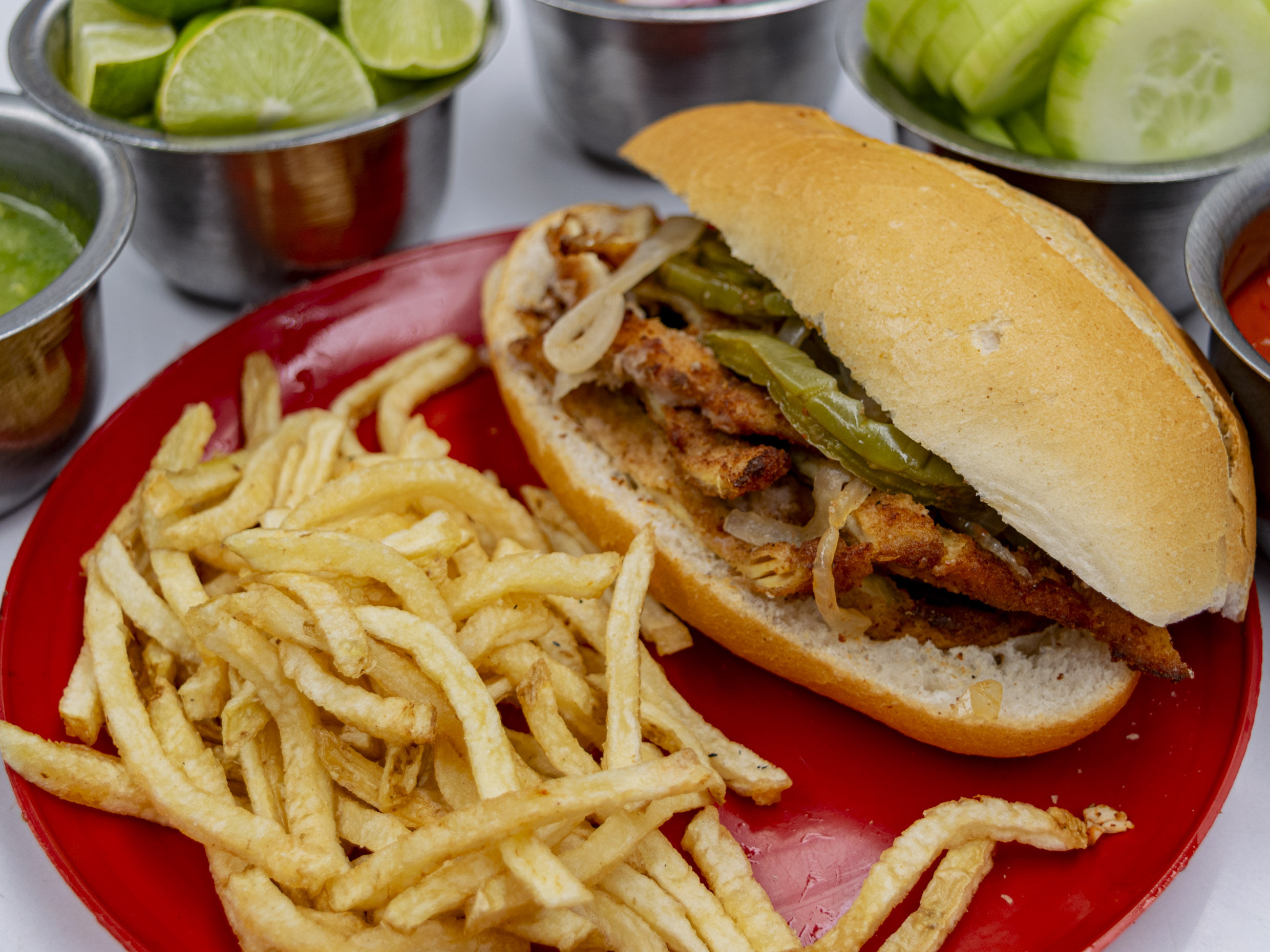 Preparada con 30 gramos(aprox.) de pechuga de pollo empanizada y frita a la perfección, servida en un bolillo crujiente que resalta su sabor acompañada de frijoles, dándole un toque tradicional y delicioso. Puedes disfrutarla sola o acompañada de nopales, cebolla cocida o papas a la francesa, según tu preferencia. Y para hacerla aún más refrescante, acompáñala con una rica agua natural de 1 litro.