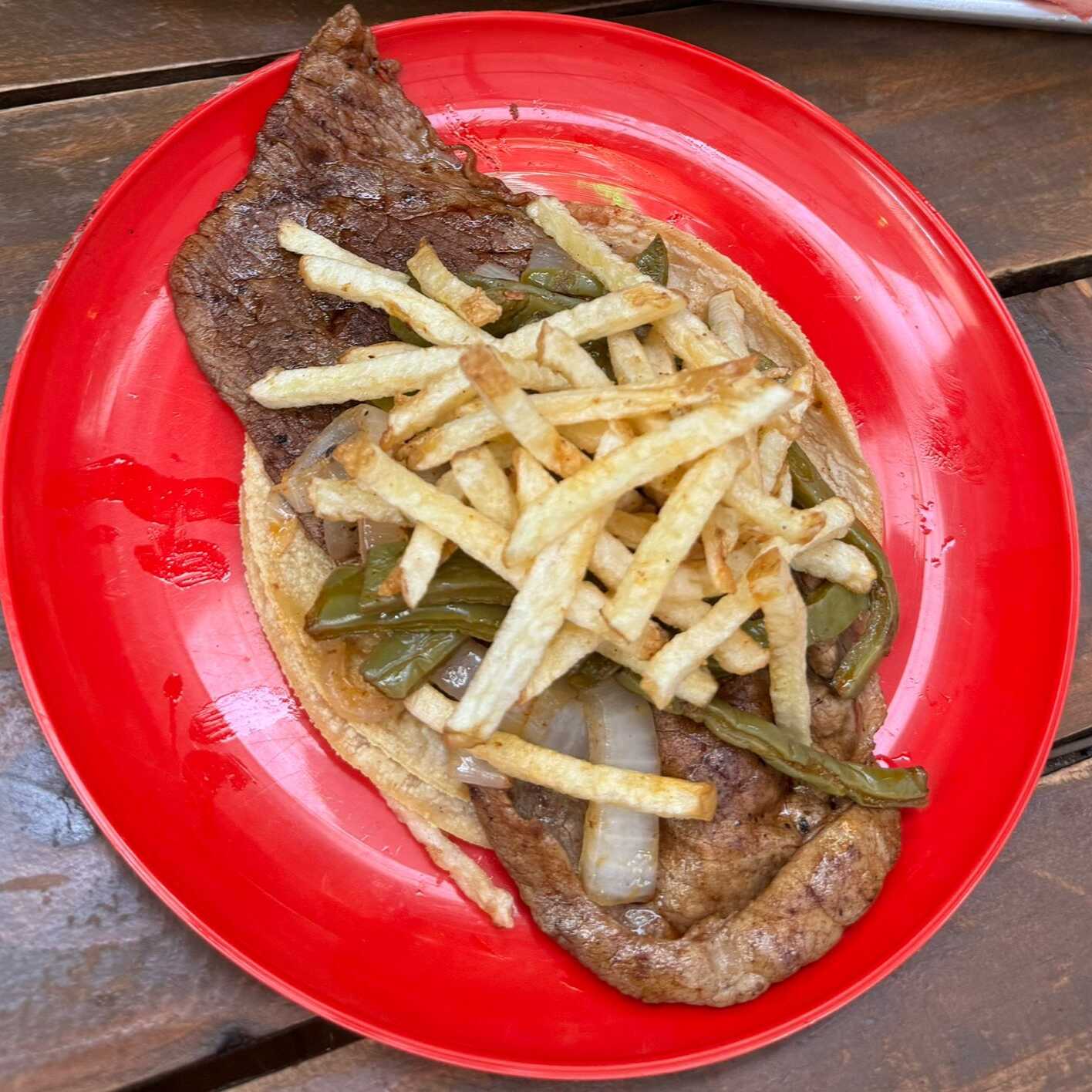 Preparado con 30 gramos(aprox.) de carne mezclada con pimientos morrones, cebolla y tocino, es una combinación irresistible de sabores y texturas. Pídelo solo o acompañado de nopales, cebolla cocida o papas a la francesa, según tu preferencia. Y para refrescarte, nada mejor que un agua natural de 1 litro. ¡Una opción deliciosa que no puedes dejar pasar!