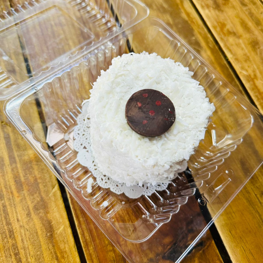 Exquisito bizcocho de vainilla y tres leches, esponjoso y delicadamente empapado, relleno con una mousse de maracuyá vibrante que contrasta con la suavidad de la crema montada. Coronado con coco rayado finamente horneado para añadir un crujir dorado. Cada bocado es un viaje tropical: lo dulce, lo ácido y lo tostado en perfecta armonía.
