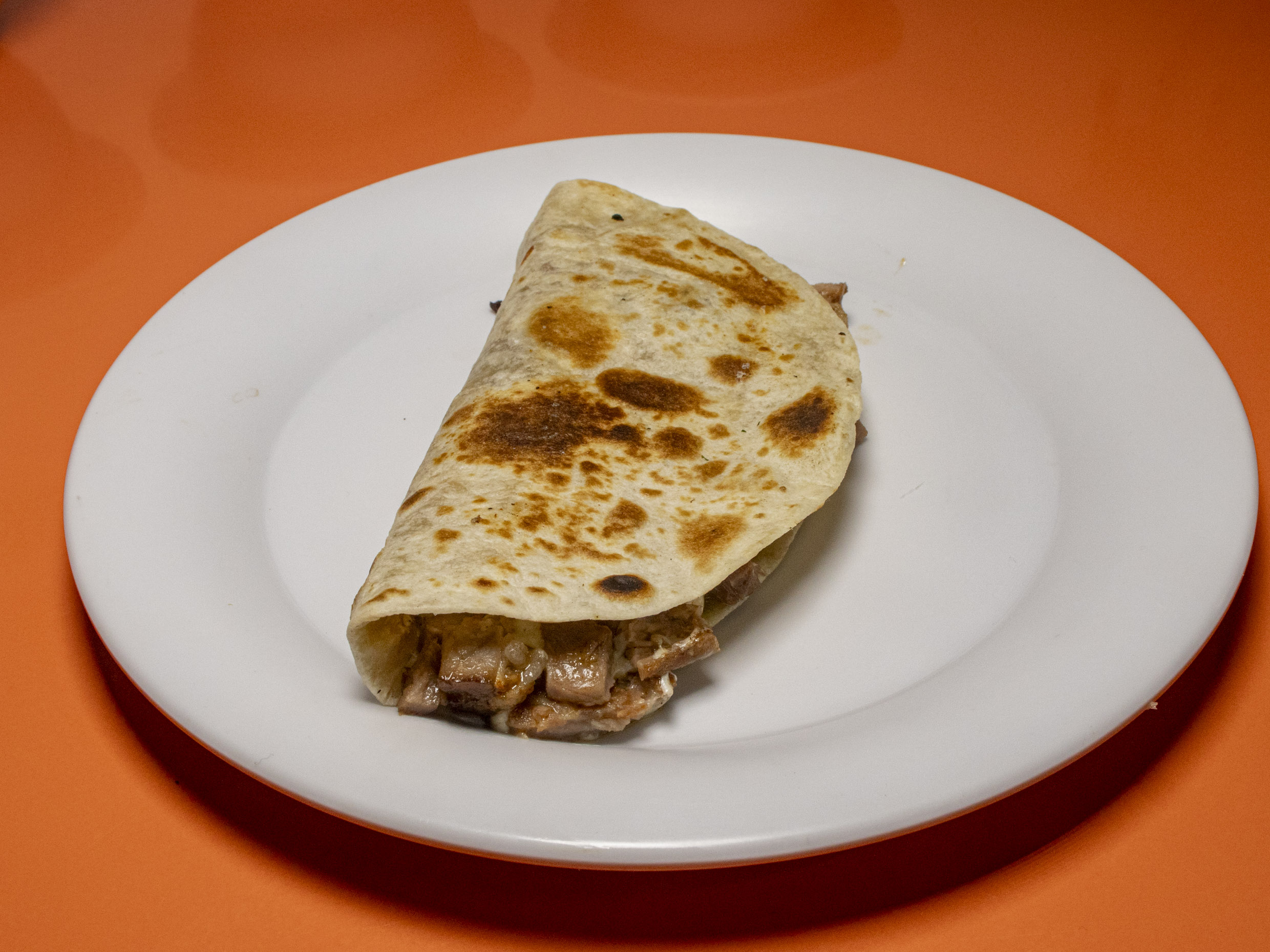 Deliciosa gringa con dos tortillas de harina y queso gratinado.
