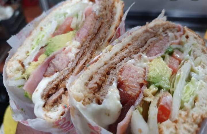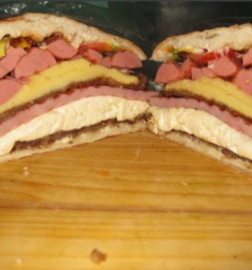 Milanesa pierna 3 quesos jamón huevo chorizo chuleta salchicha
