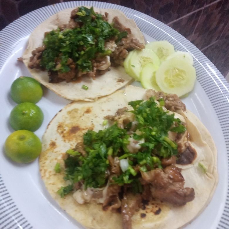 1 pieza en tortilla de maíz, con cebolla, cilantro, pepino y limón.