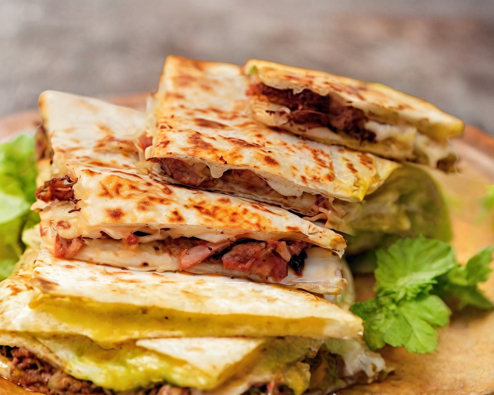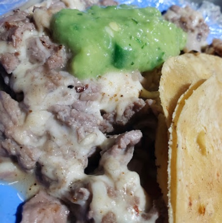 Tortilla de harina, bistec y queso.
