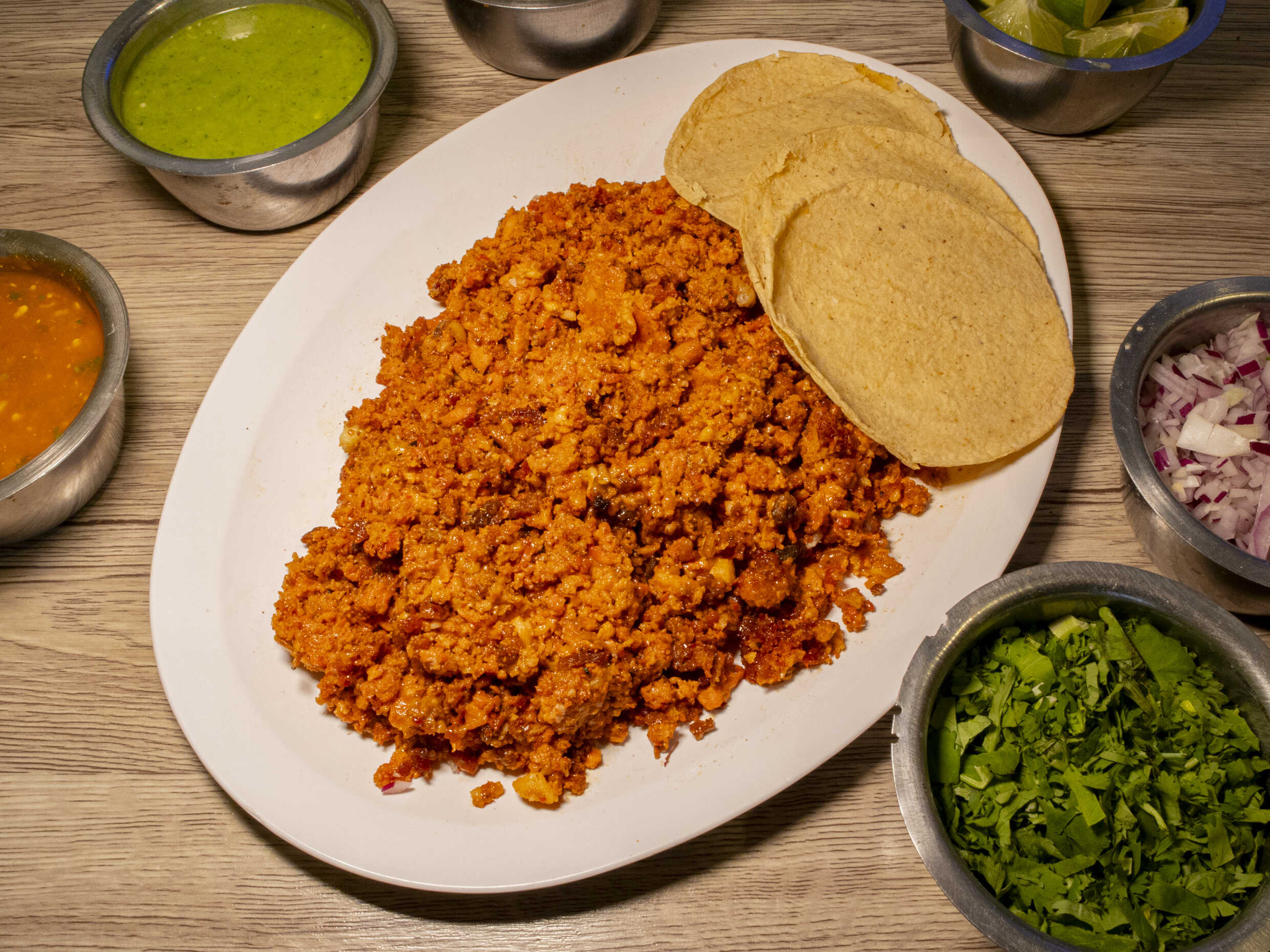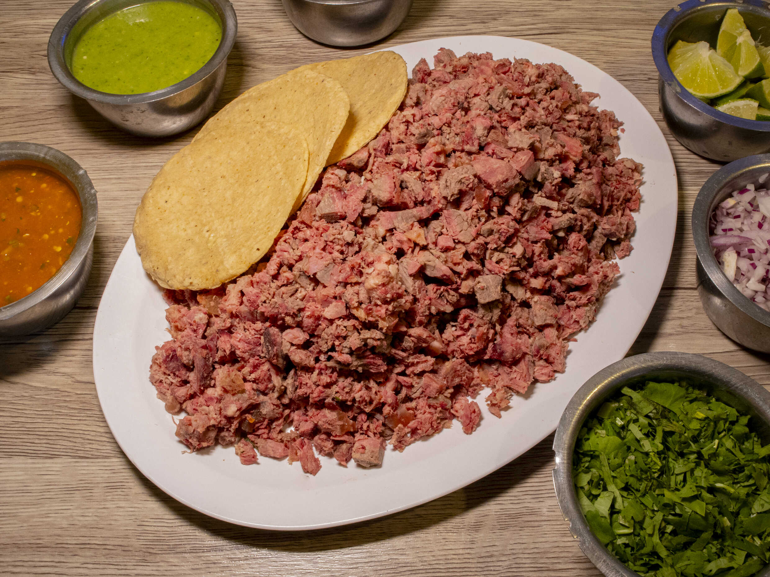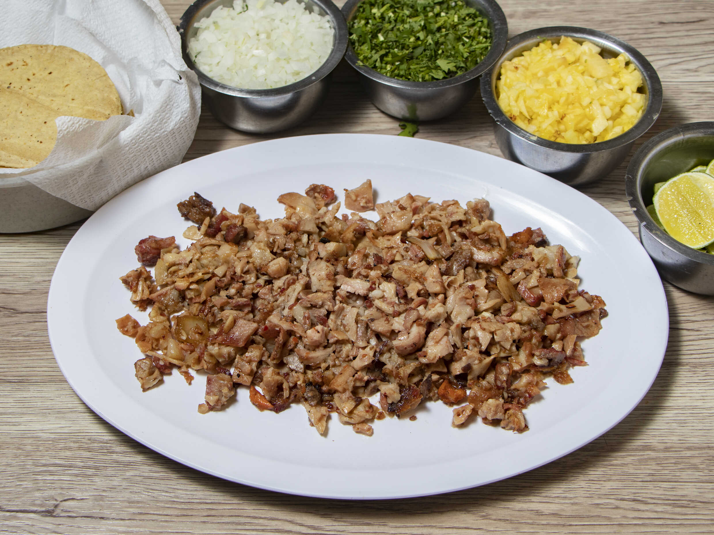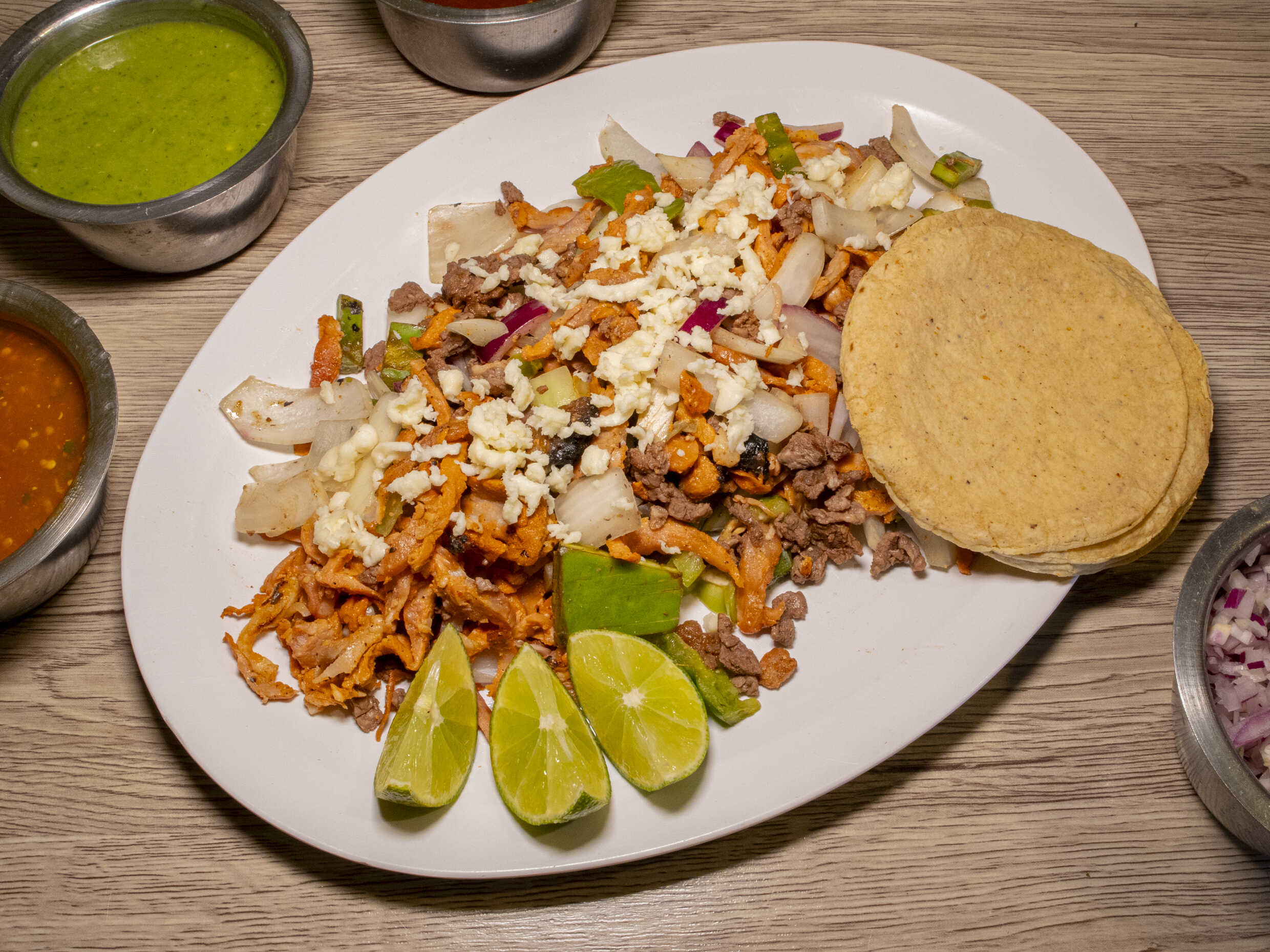 Incluye tortillas, verdura, salsa y limones.