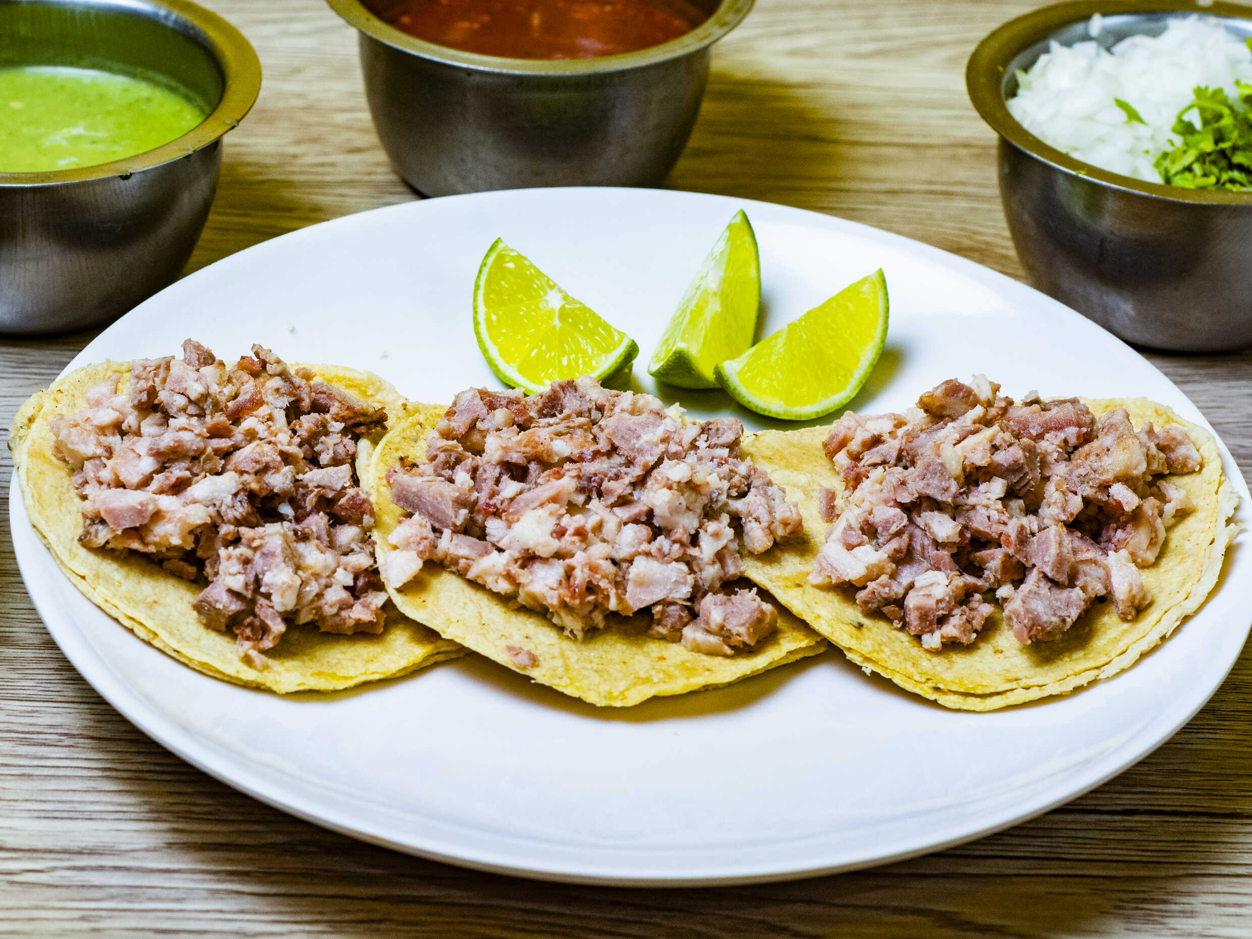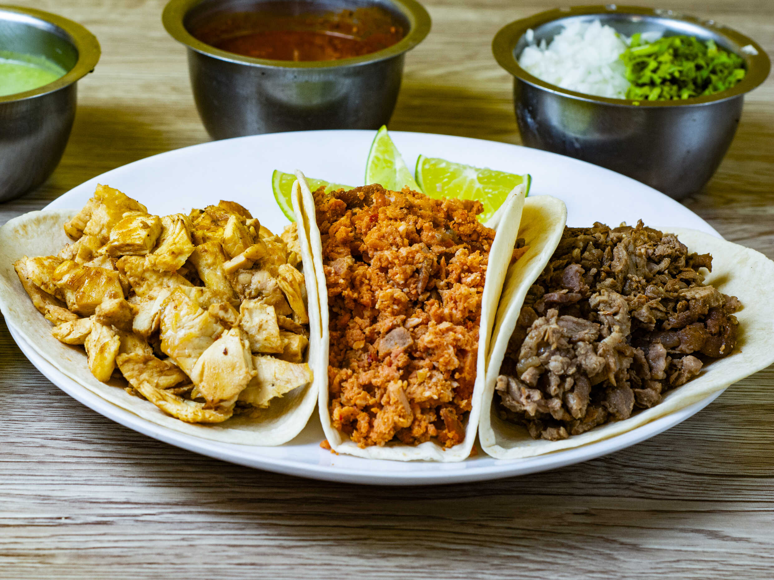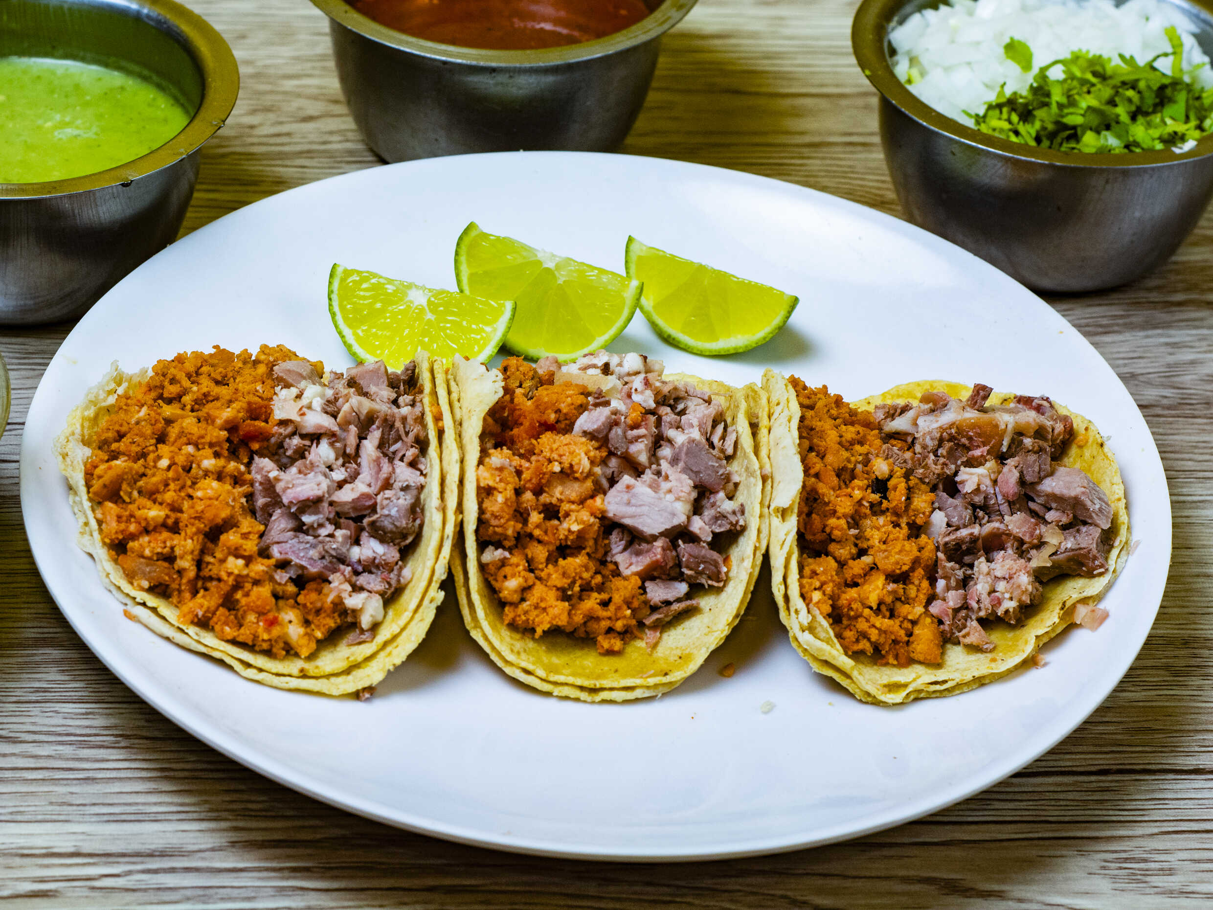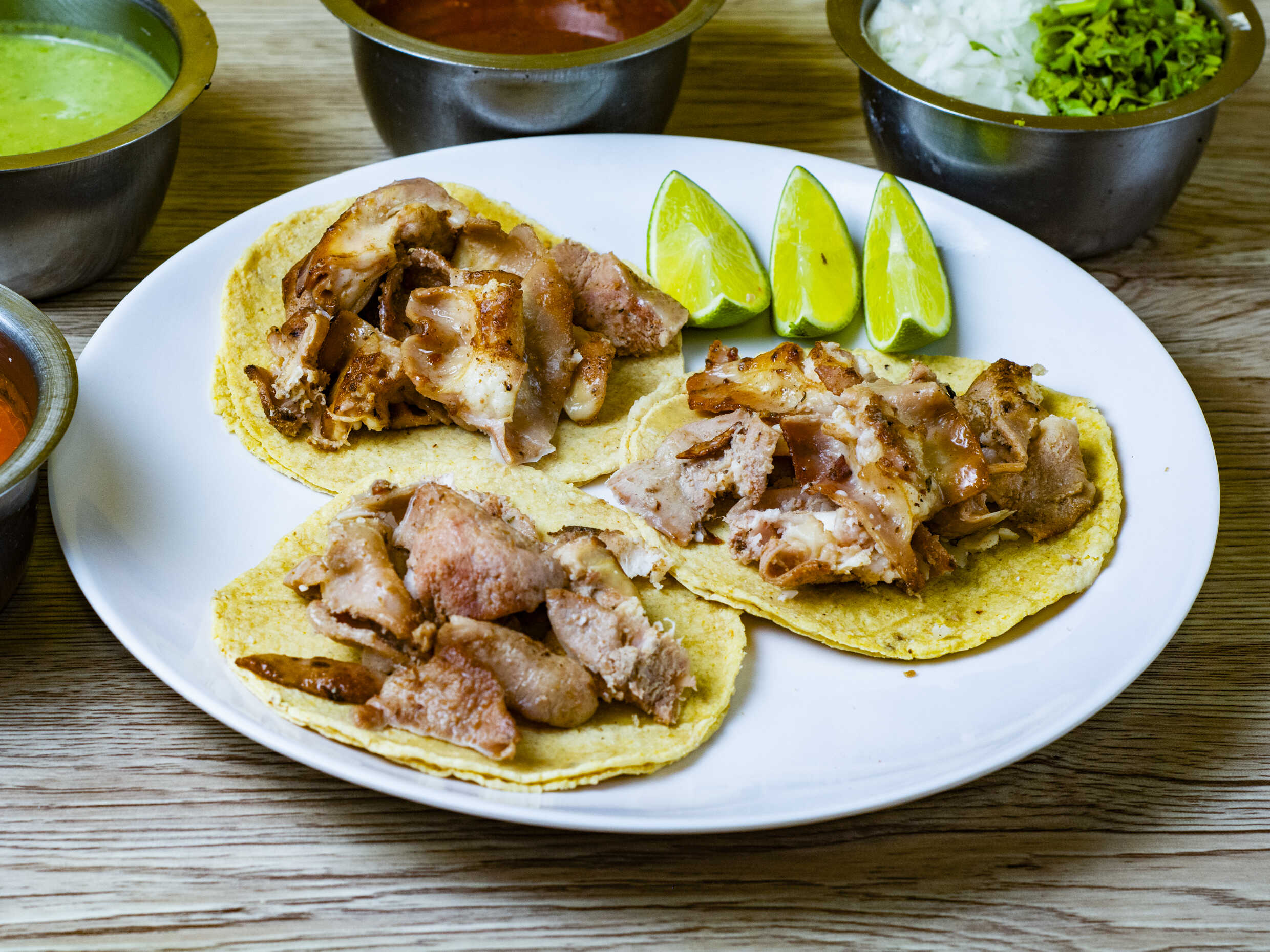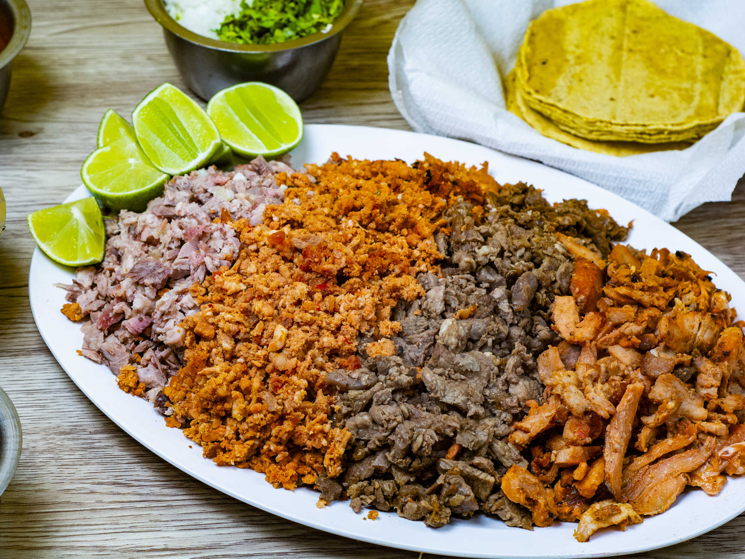 Incluye tortillas, verdura, salsa y limones.