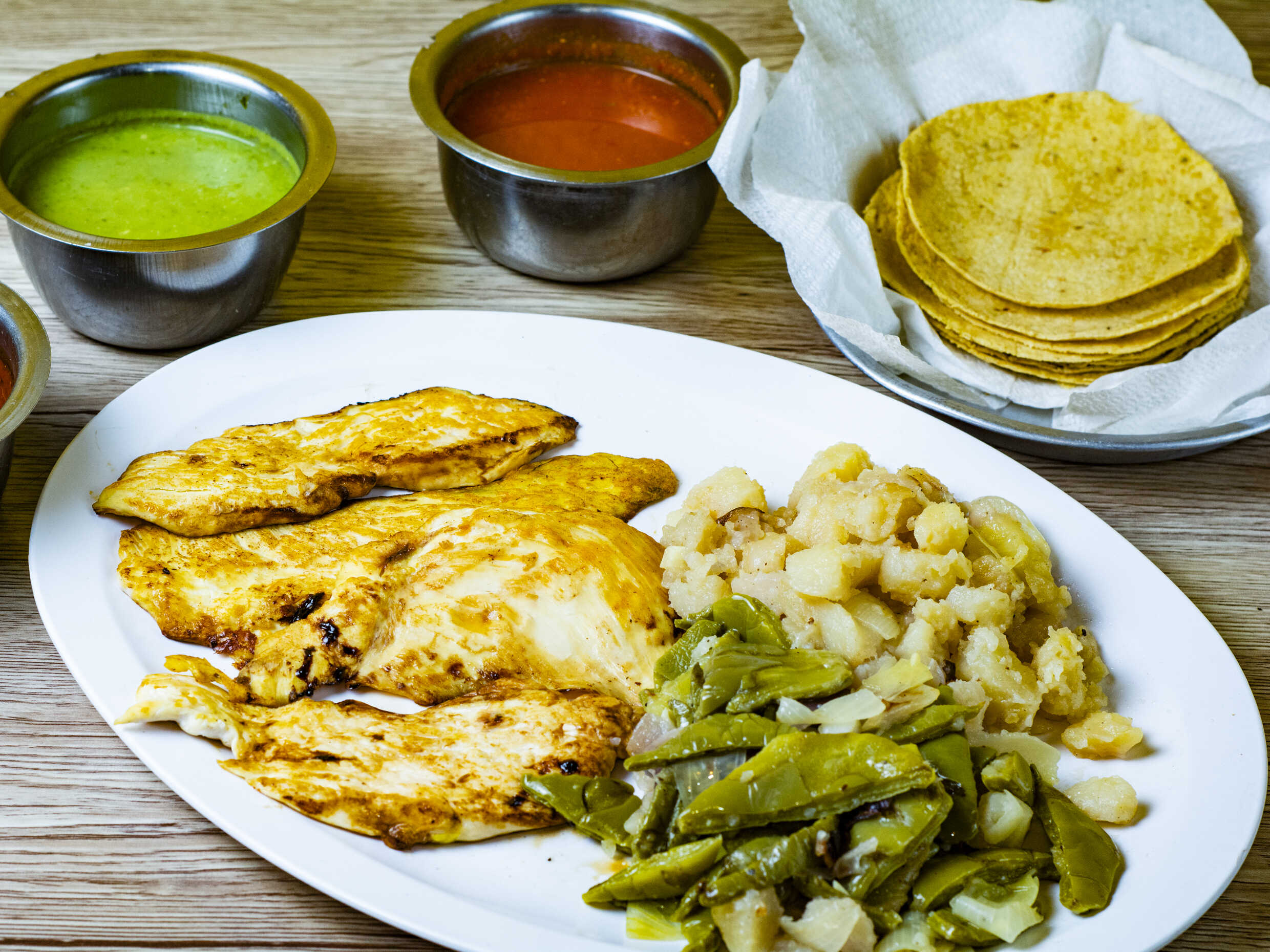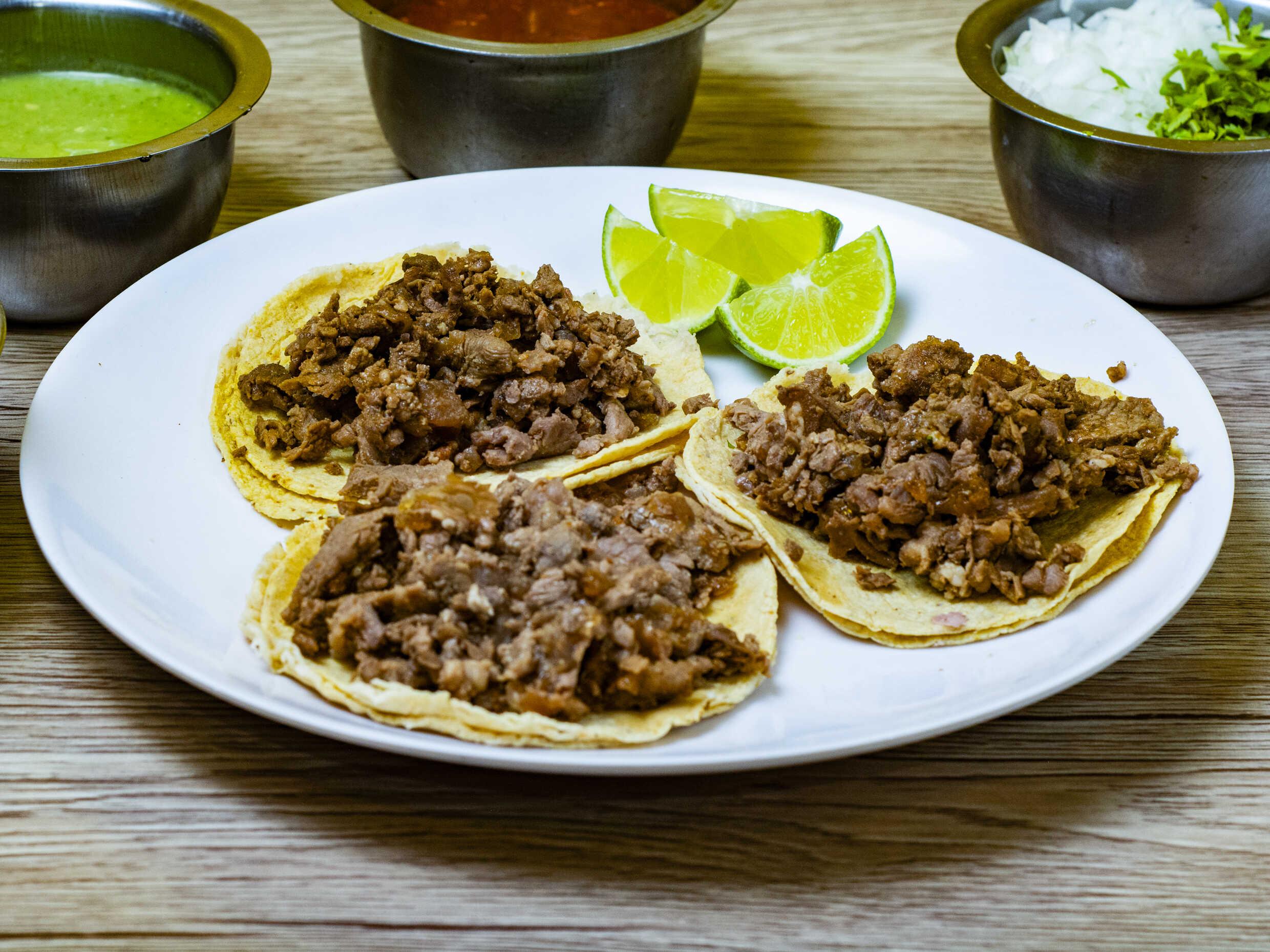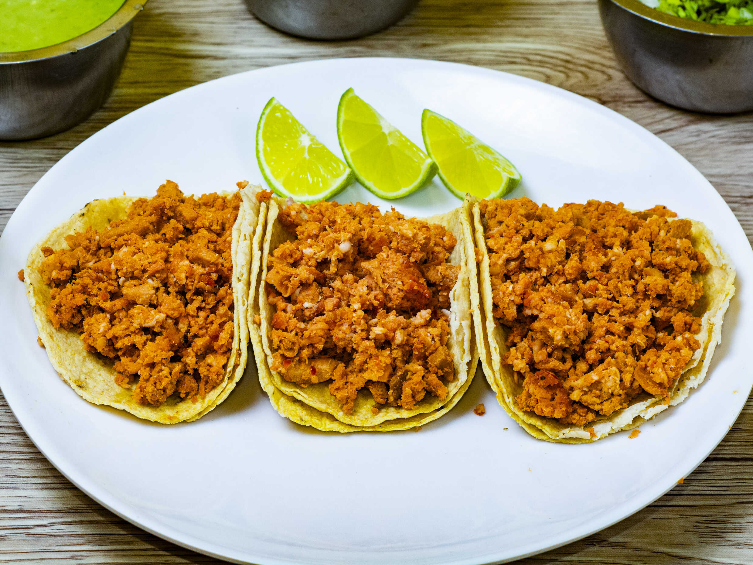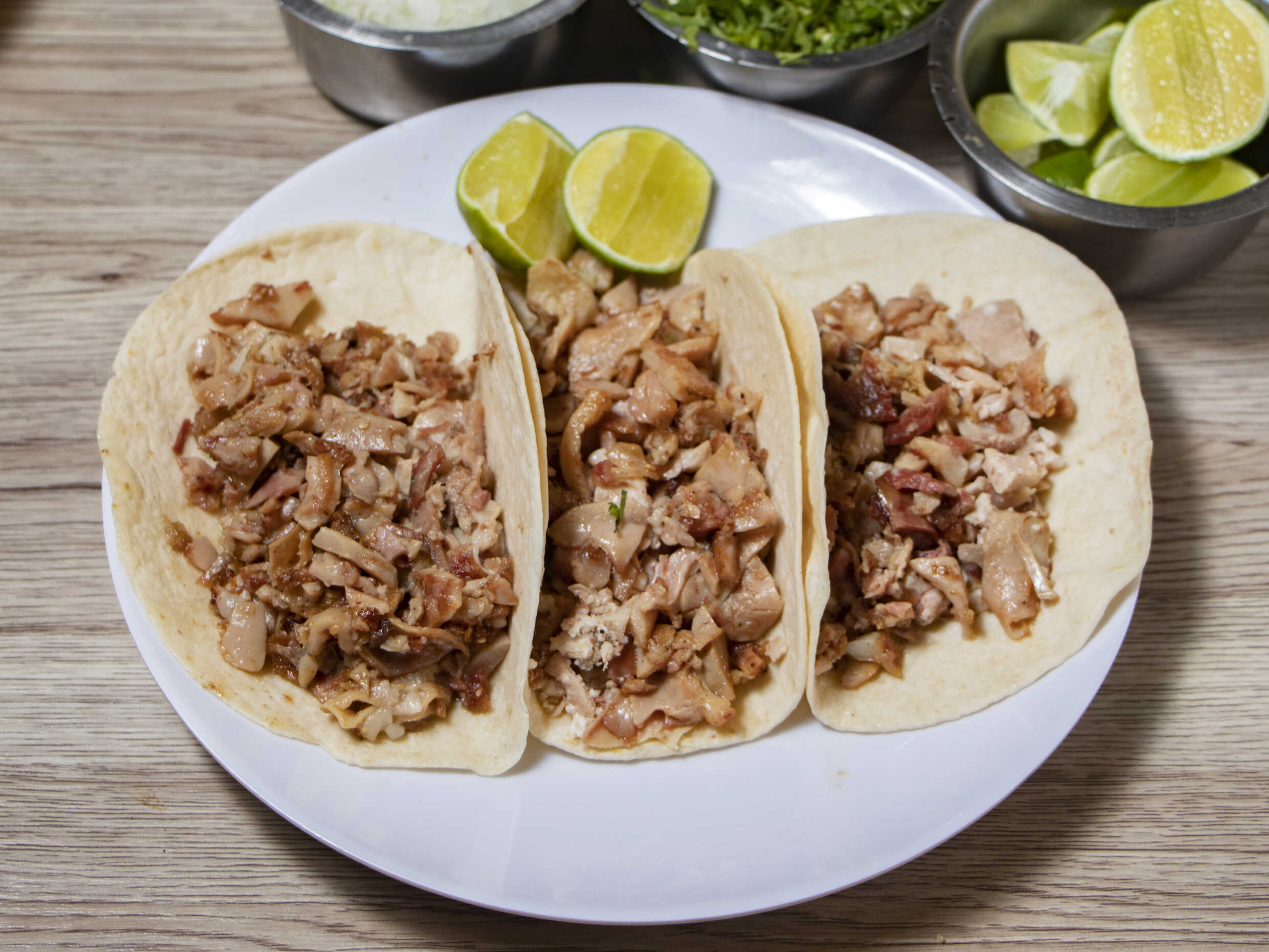 Incluye tortillas, verdura, salsa y limones.