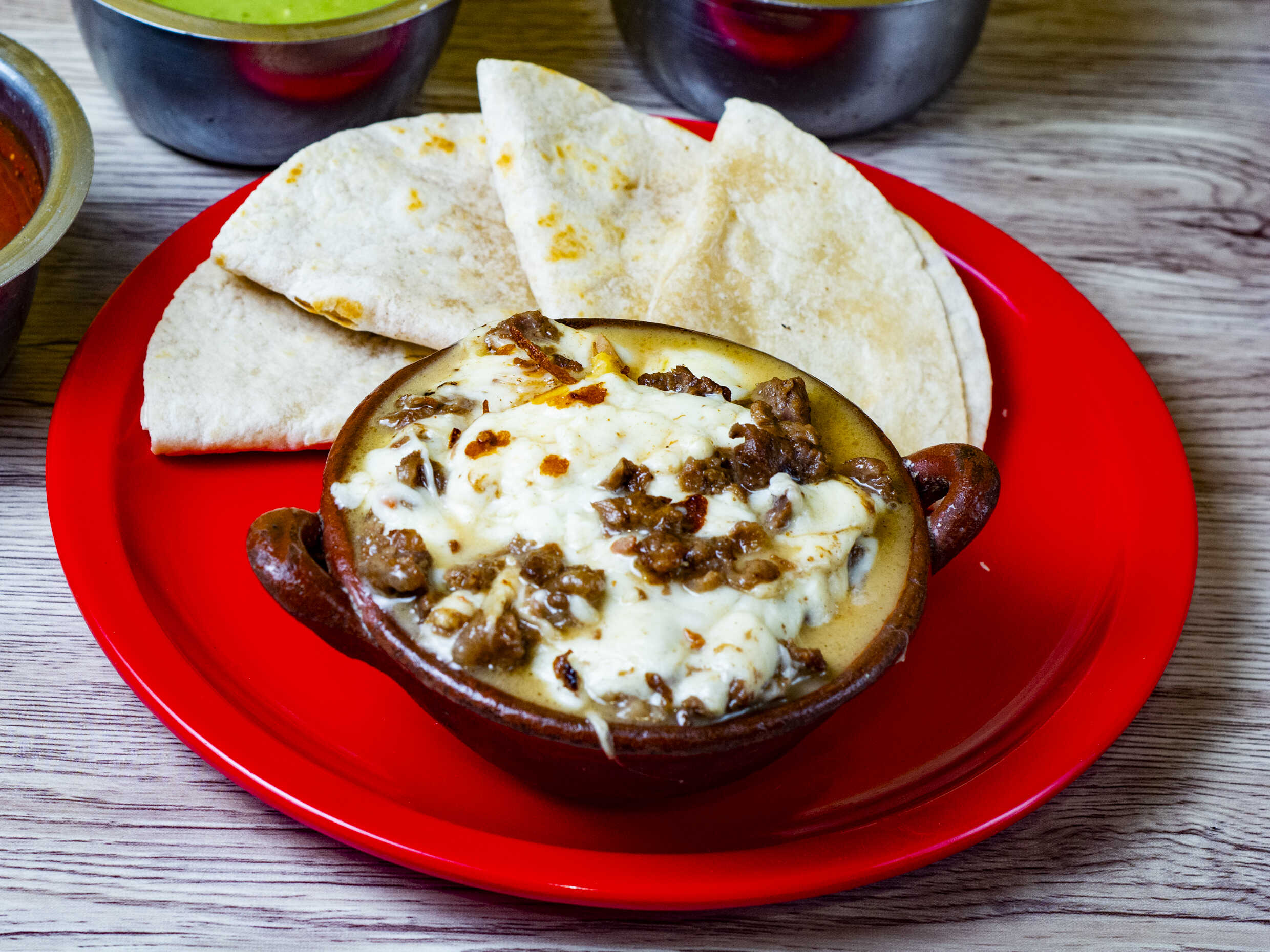 Arrachera y queso en tortillinas.